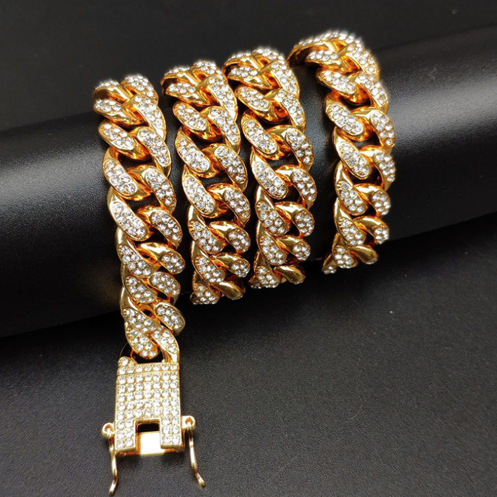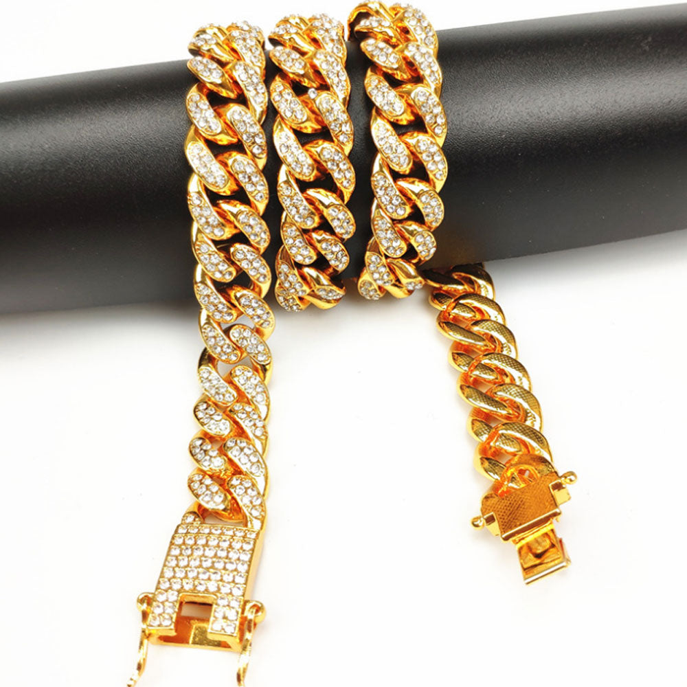 12mm brass alloy rhinestone beads micro paving iced out cuban link chain necklace for men women jewelry