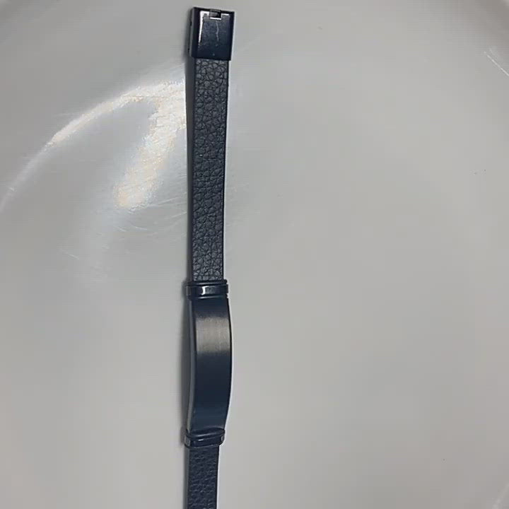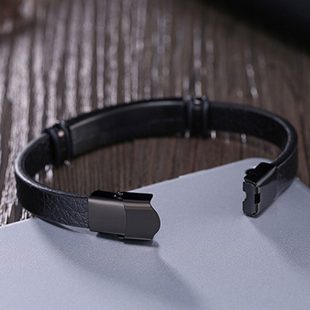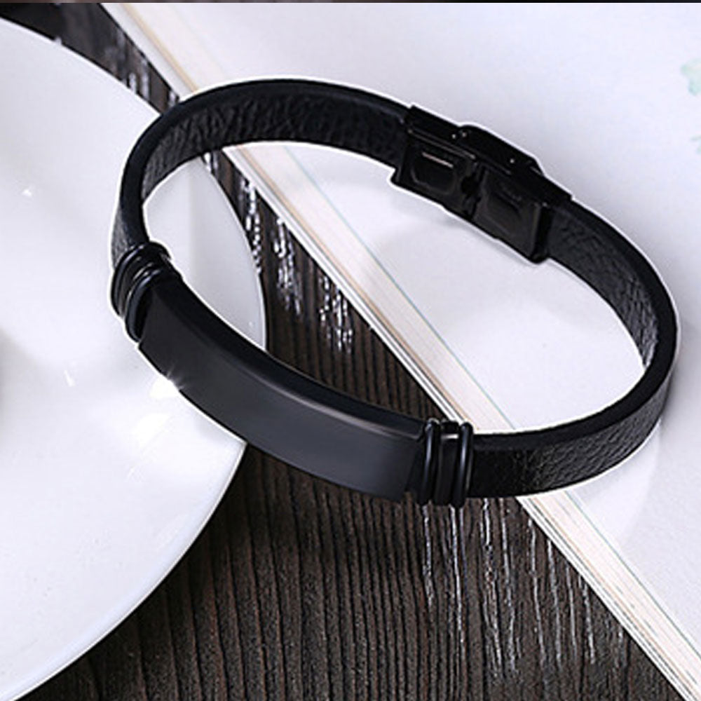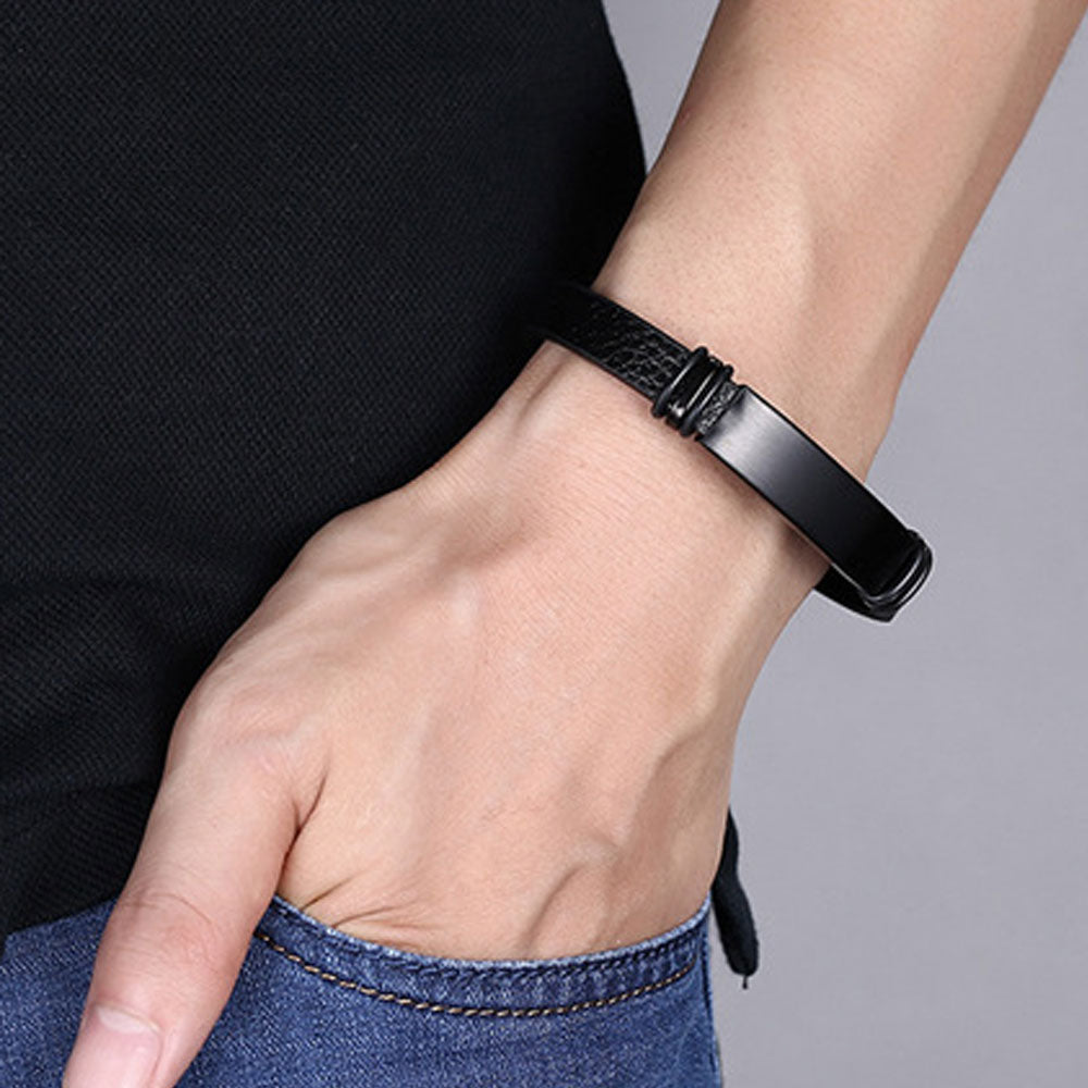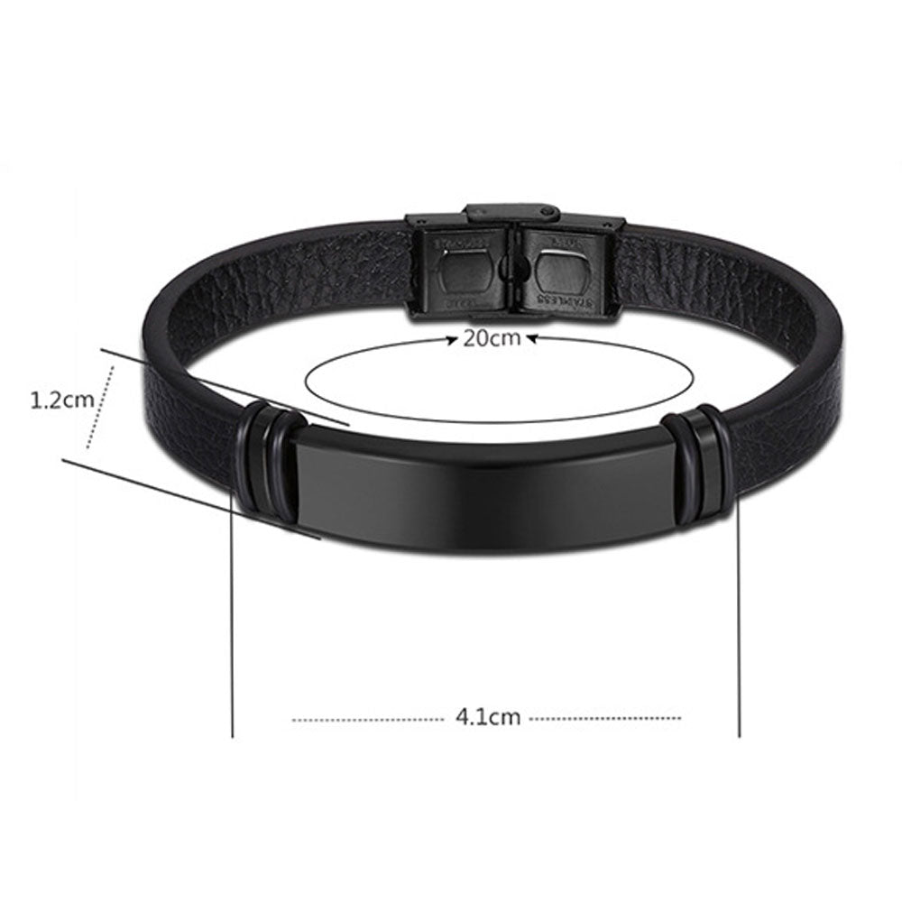12mm wide black men's fancy metal blank plates engravable bangle bracelets leather stainless steel men trendy jewelry