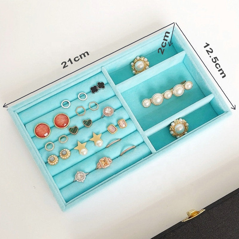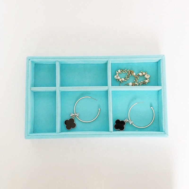 21*12.5*2cm Blue Drawer Divider Wooden with Luxury Velvet Jewellery Storage Earring Ring Organizer Jewelry Display Tray