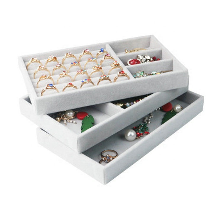 212*125*25mm Grey Velvet Showcase Storage Tray Drawer Divider for Bracelet Ring Earring Jewelry Display Tray