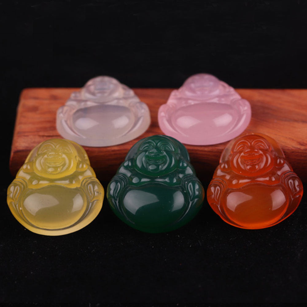 27mm natural pink black green white red gem stone jade buddha pendant necklace