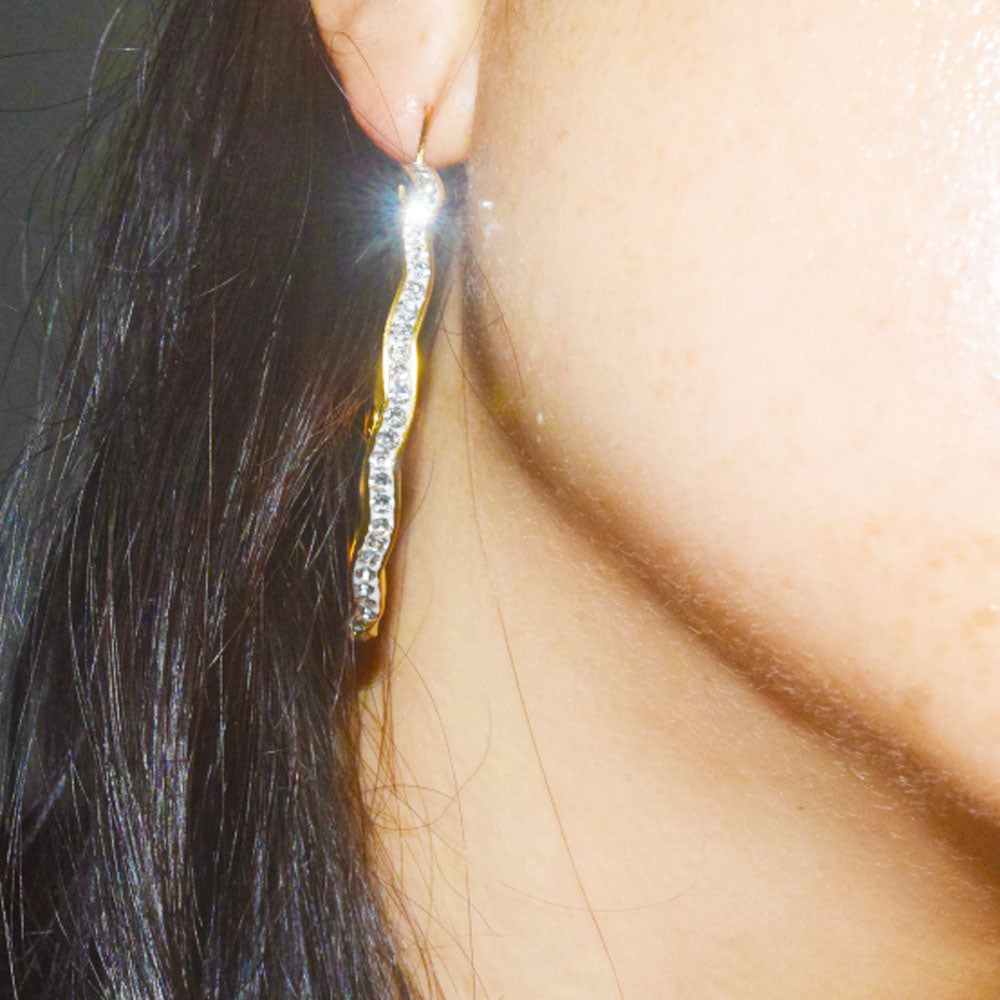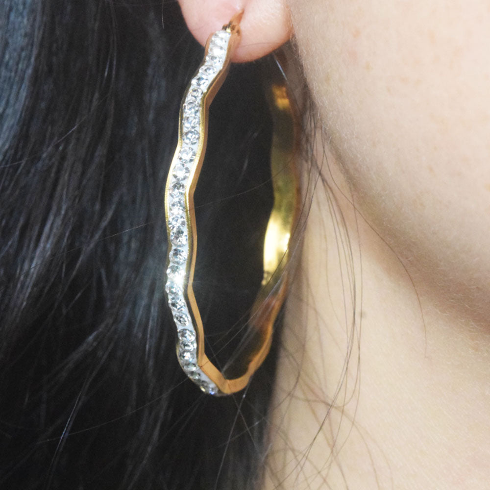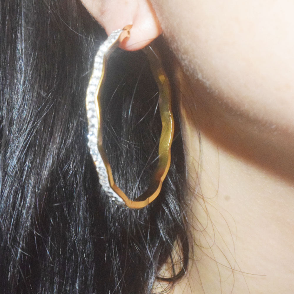 4 5 6cm waterproof titanium stainless steel 18k gold plated big cz hoop diamond zircon iced out loops earring wave edge