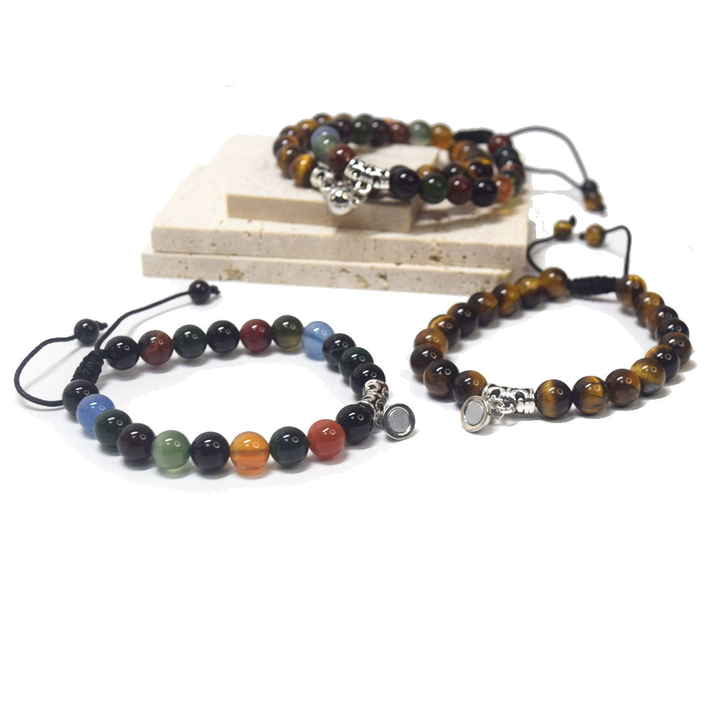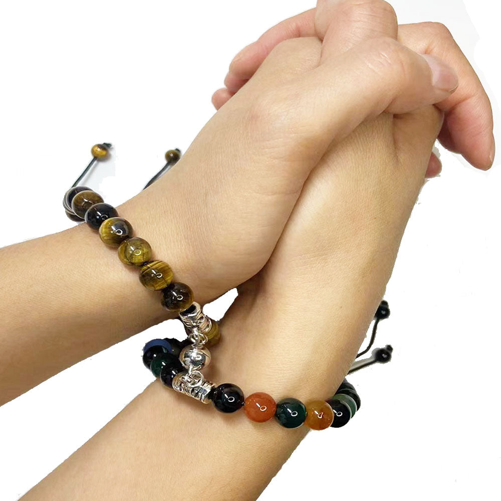 6 colors handmade stone crystal adjustable boutique valentines couple gift bracelet magnetic ball charm pendant bracelets