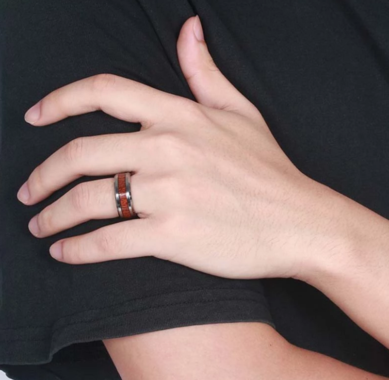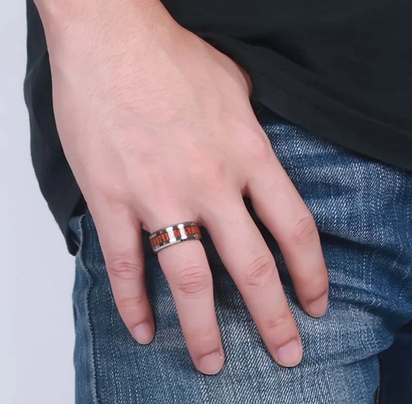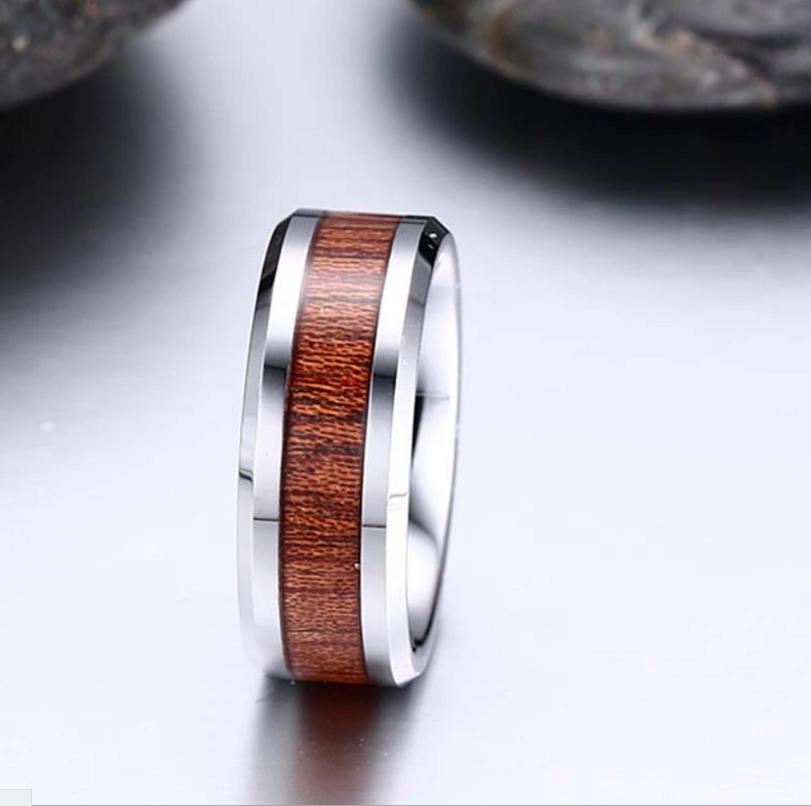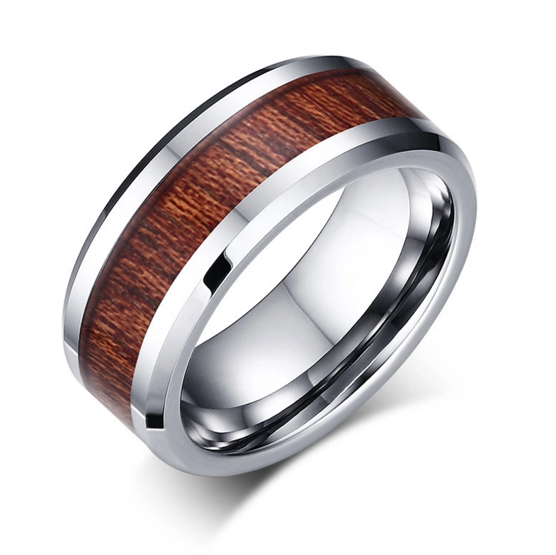8mm brushed tungsten carbide steel Wood blank inlay silver color finger rings for men ring
