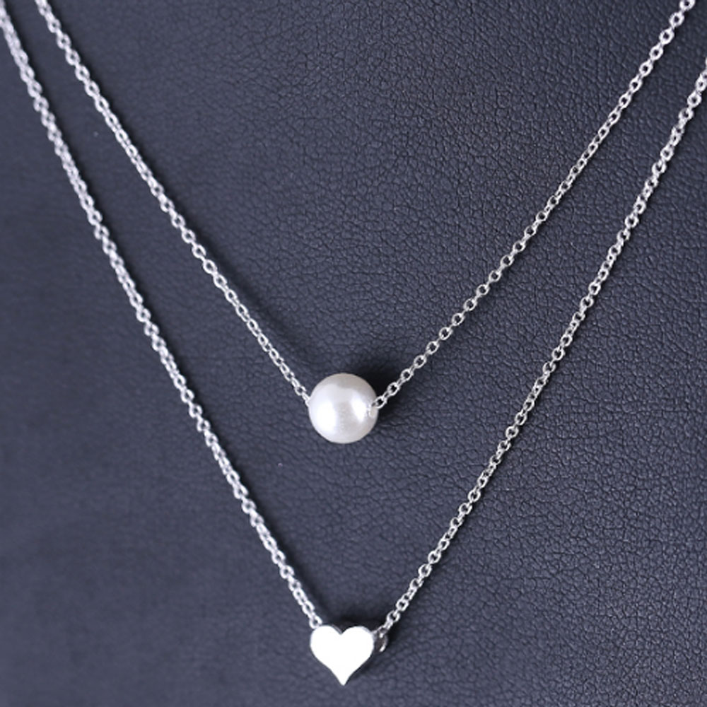925 sterling silver heart pendant with ABS pearl bead jewelry necklace beaded neck design