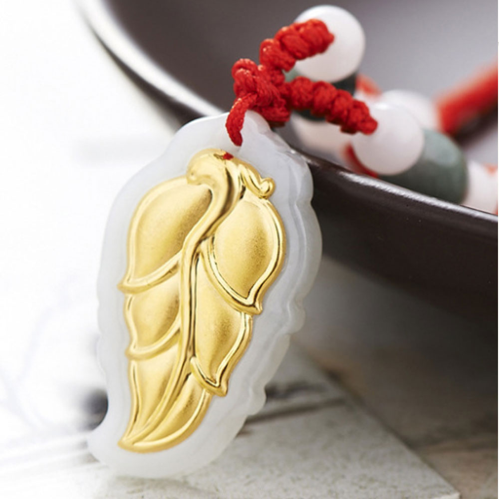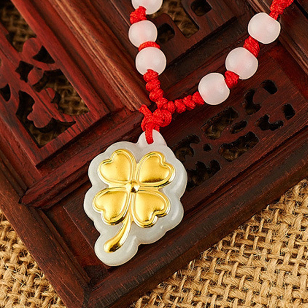 A grade Chinese jade stone fine gold cat four leaf clover cross jesus leaf Pendant Necklace Jewelry for Women Wholesale