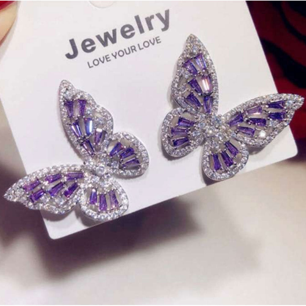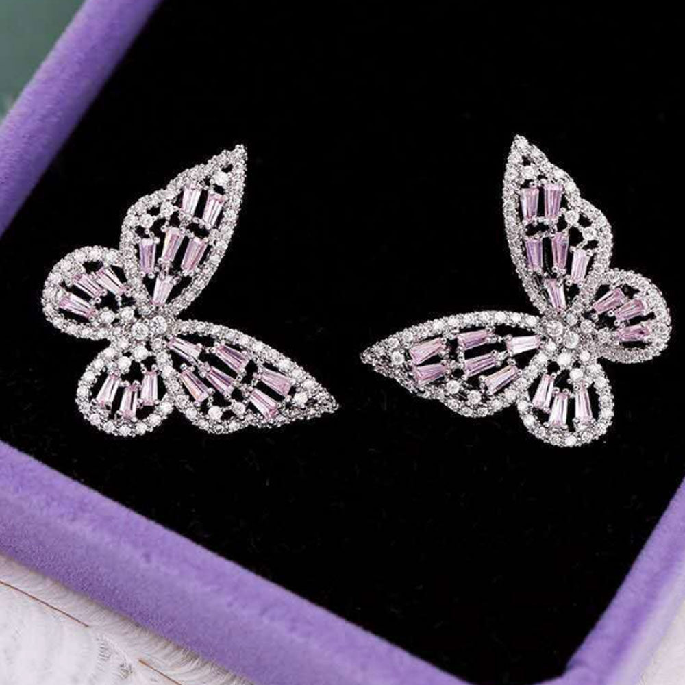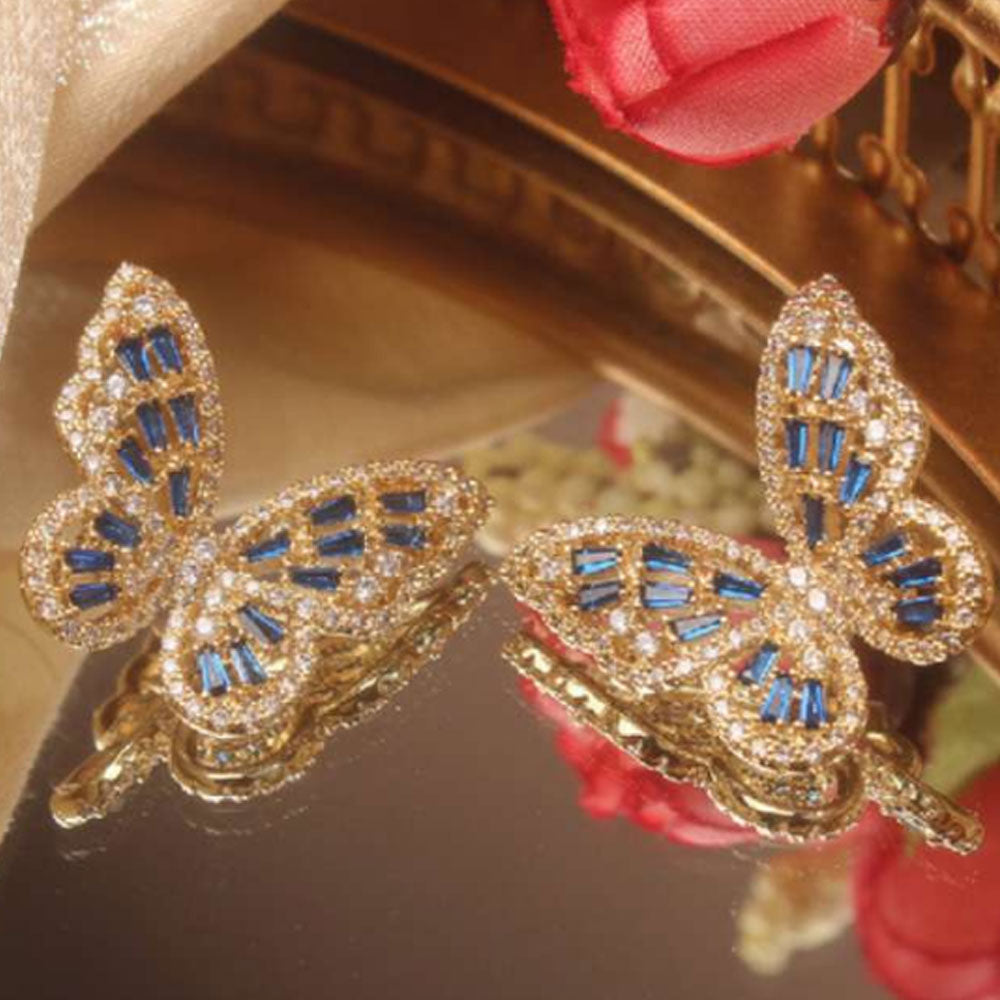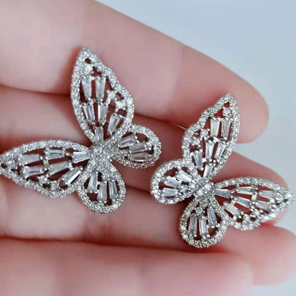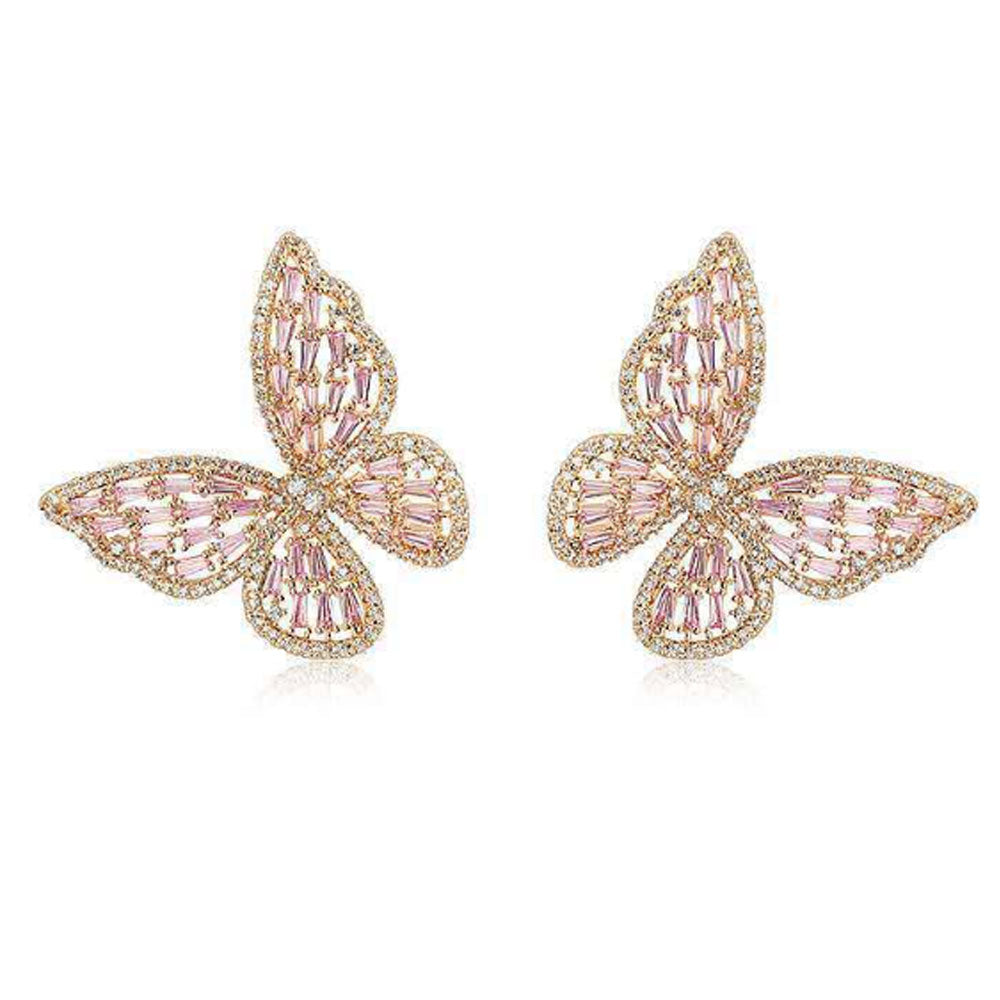 AAA cubic zirconia butterfly butterflies wing 14k gold plated stud earring jewelry women