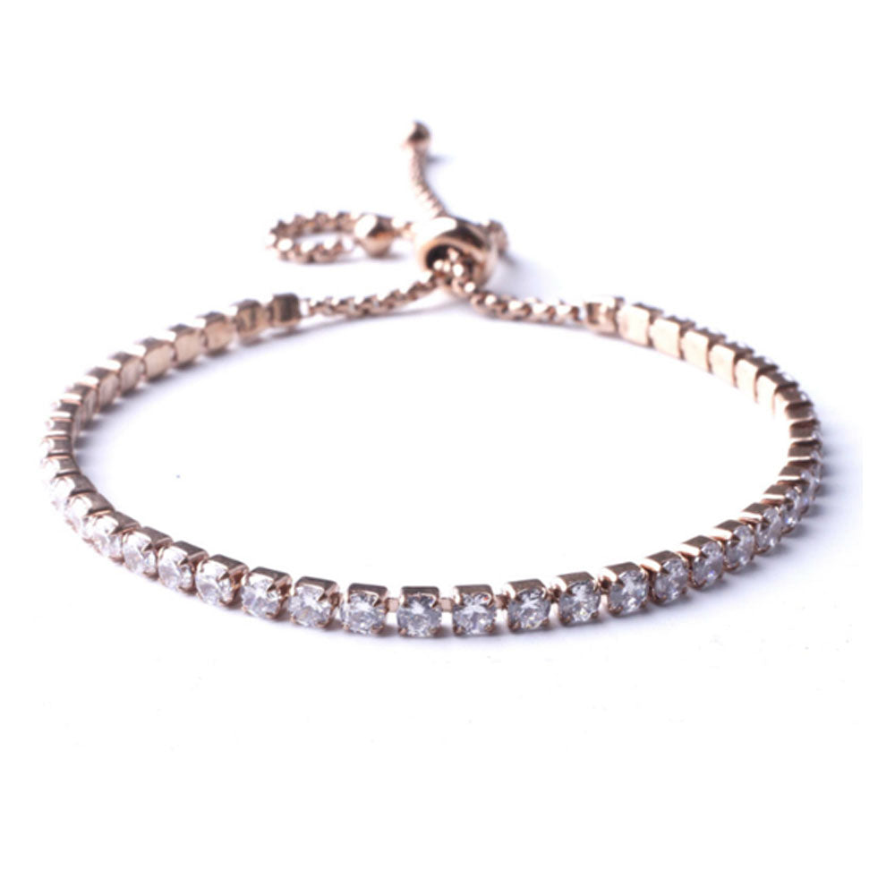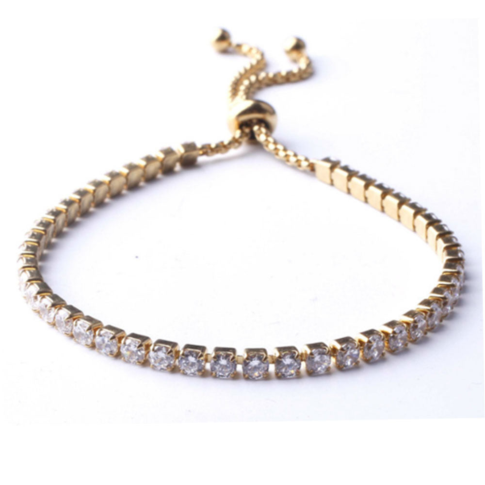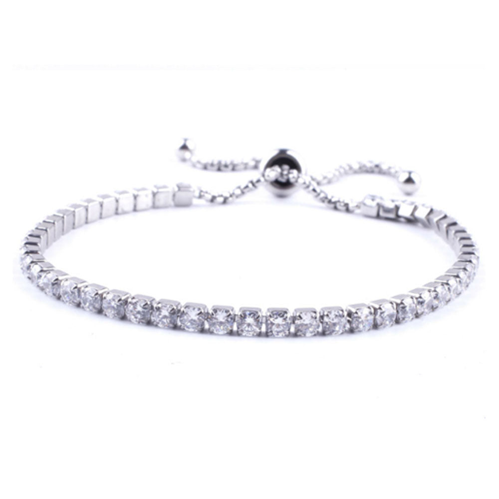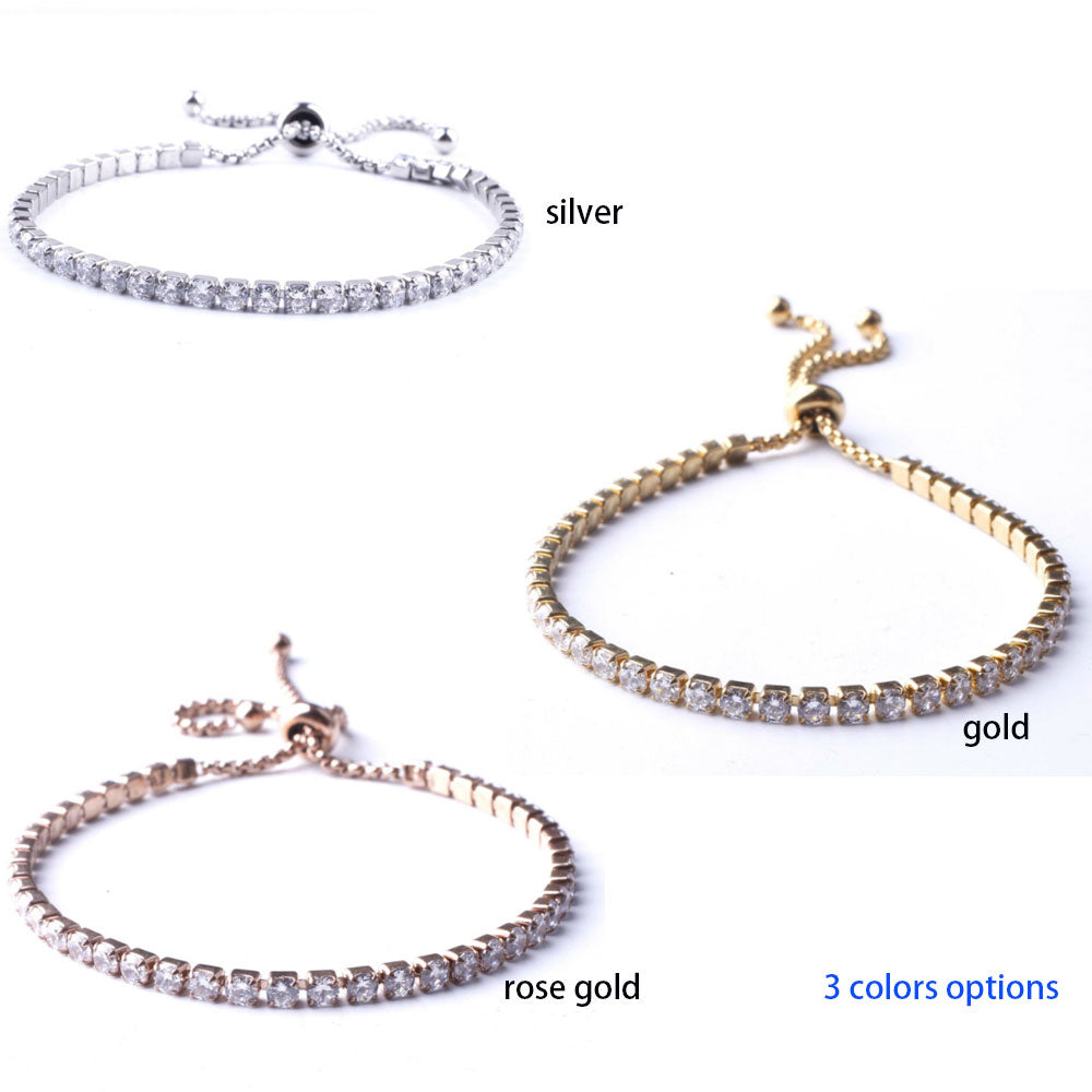 adjustable fashion stainless women steel cubic zircon beads diamond tennis chain bracelet