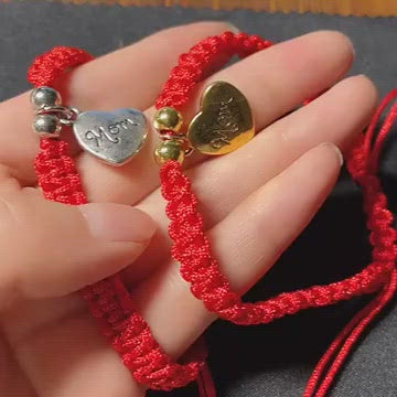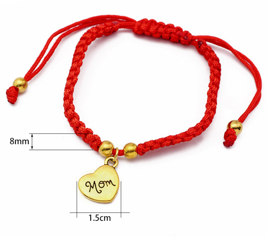 Adjustable Red string thread cord rope good luck braided bracelet with heart charm for MOM gift custom available