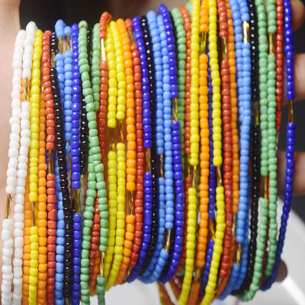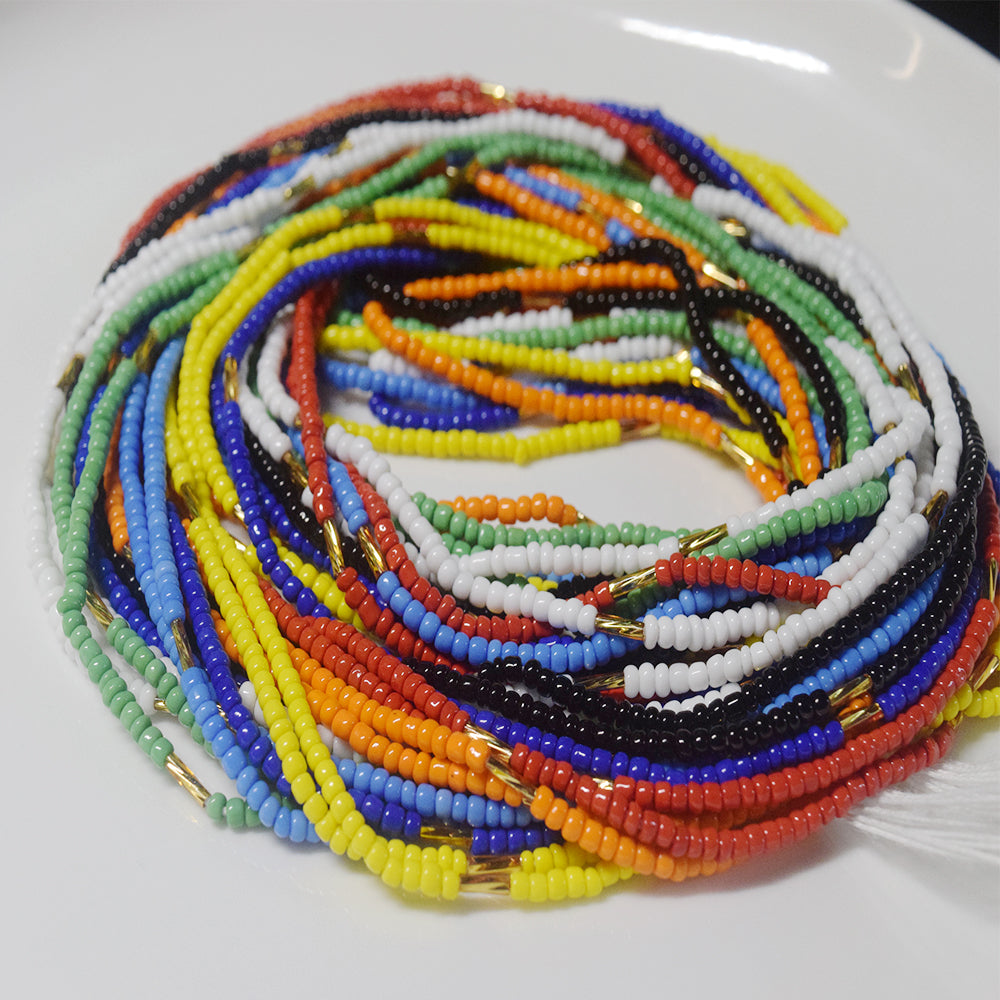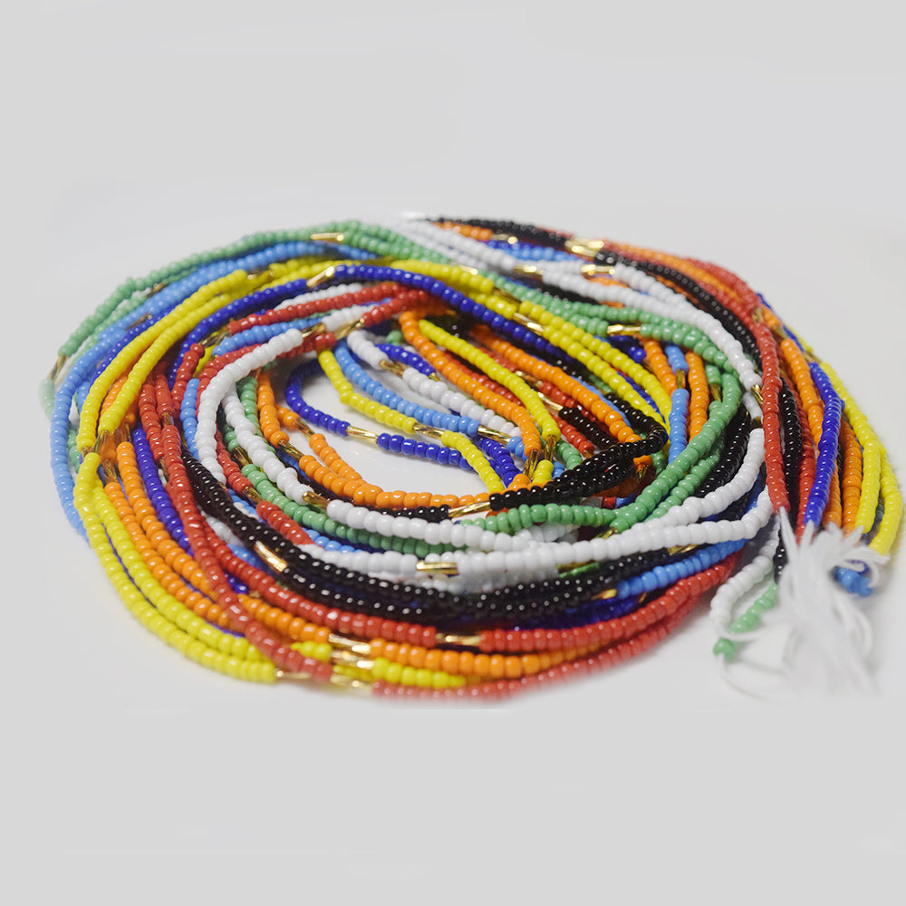 african weight loss african tie on waist glass beads green white gold belly chain with clasp on cotton string strand bulk women