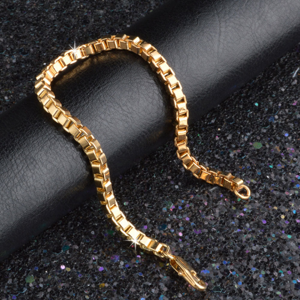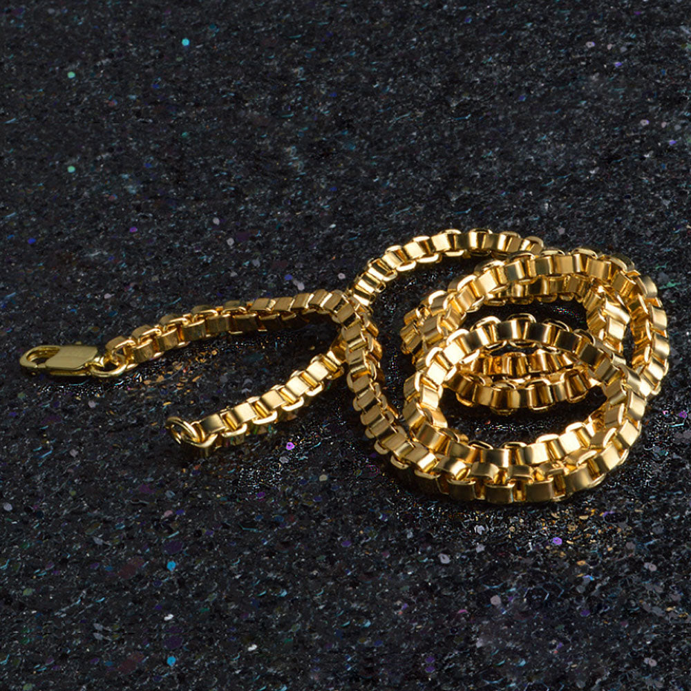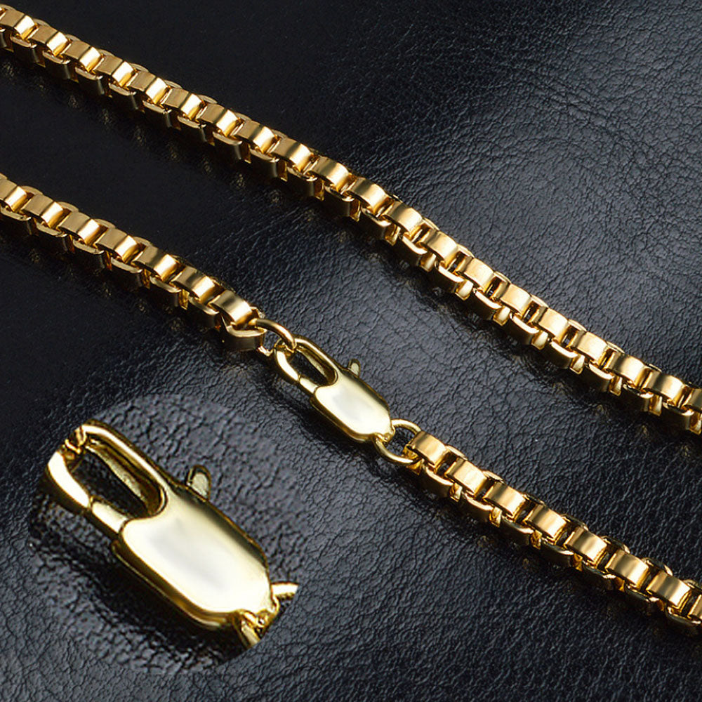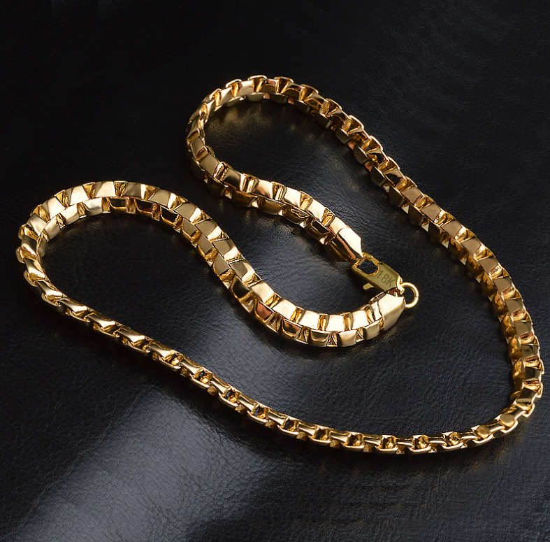 alloy 8MM wide 50CM Long 18K GOLD plating men box link chain necklace