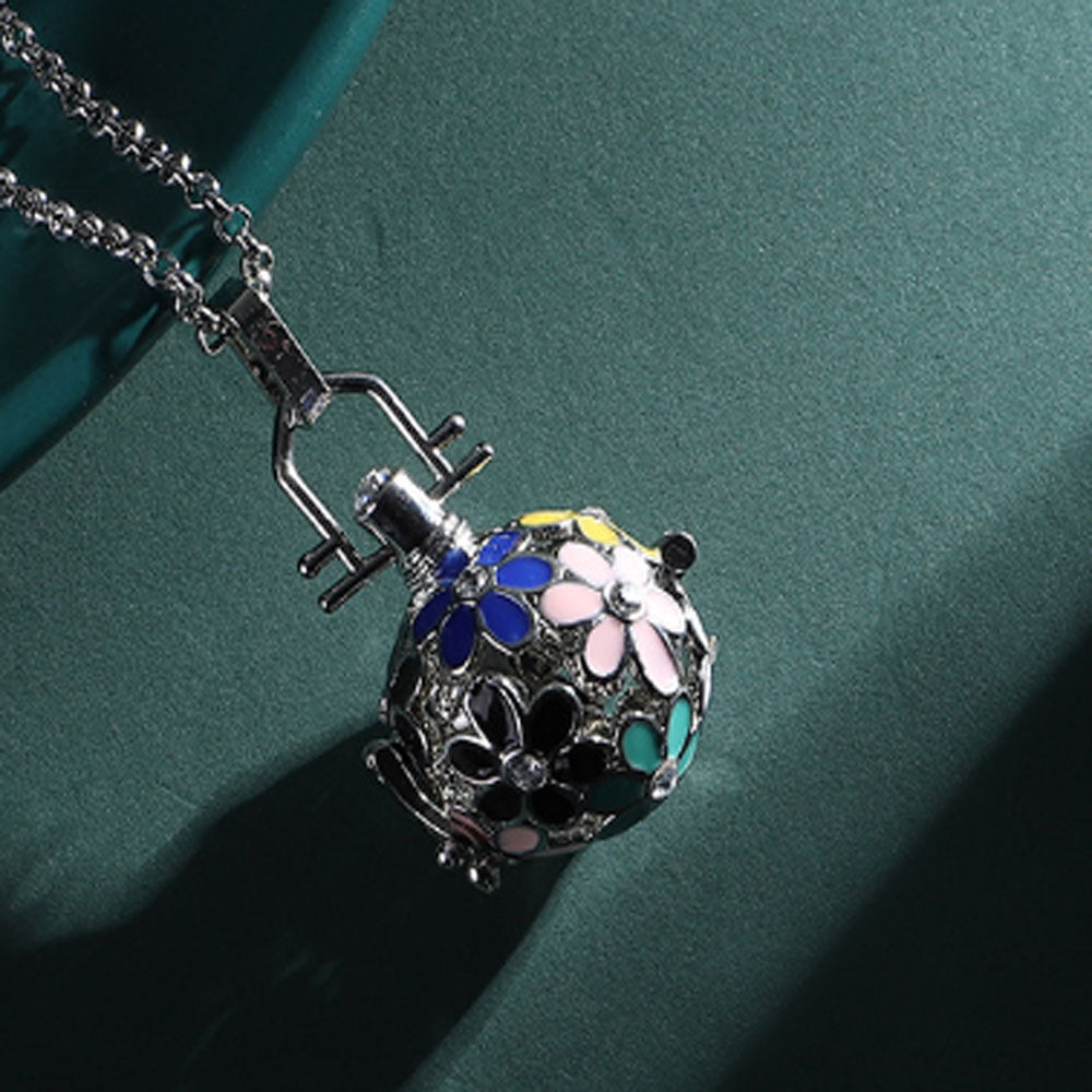alloy aromatherapy aroma essential perfume oil differser chim ball pendant necklace diffuser enamel flower charm no chain