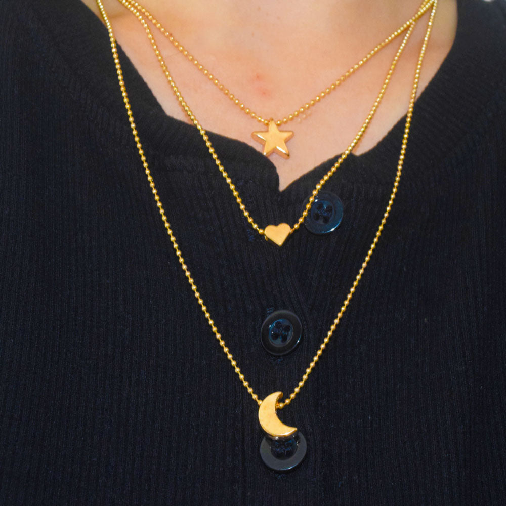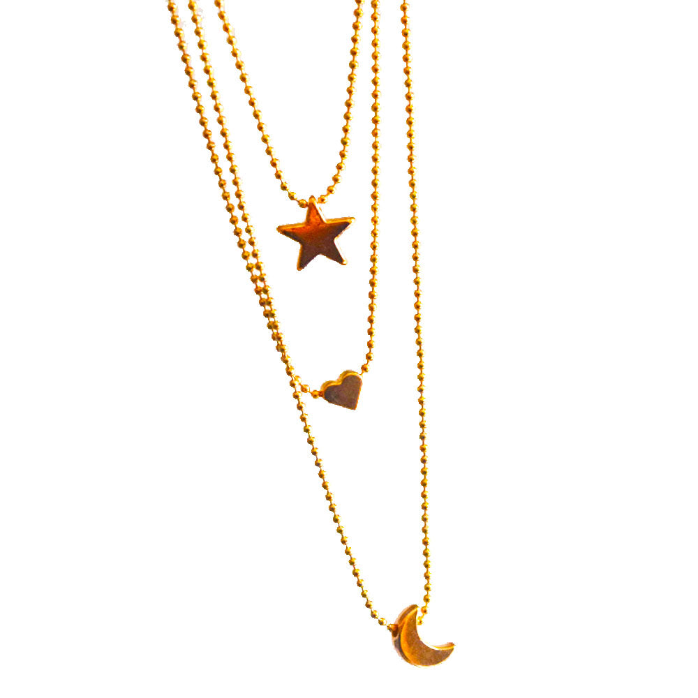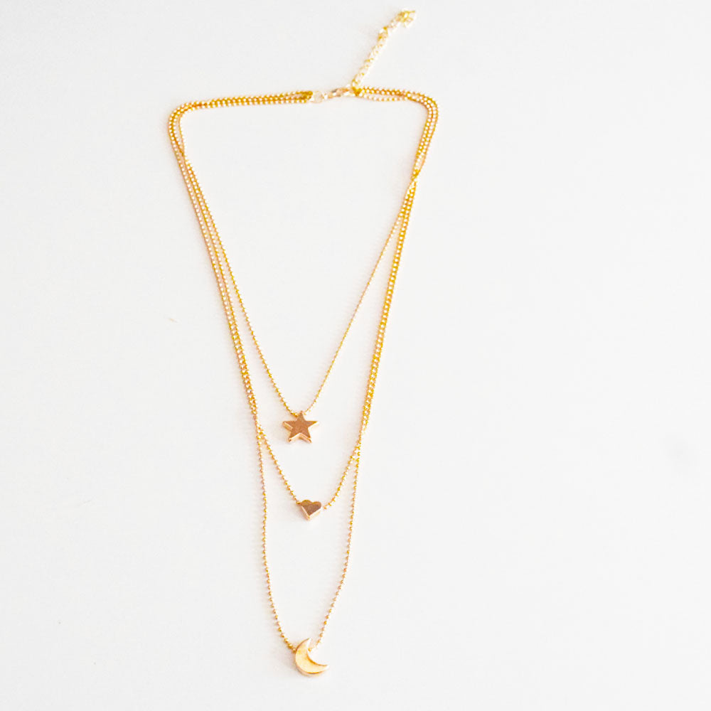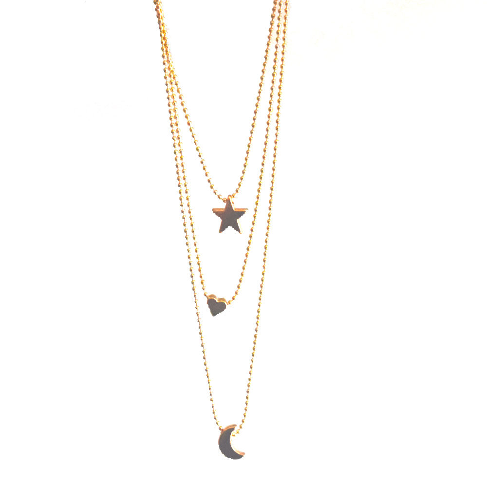 alloy gold color moon heart star charm layered necklace jewelry for women