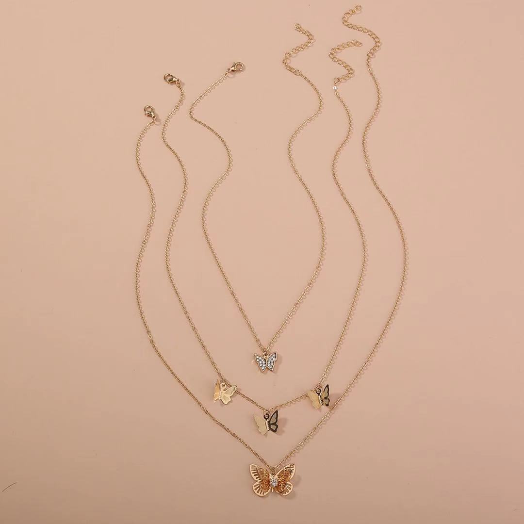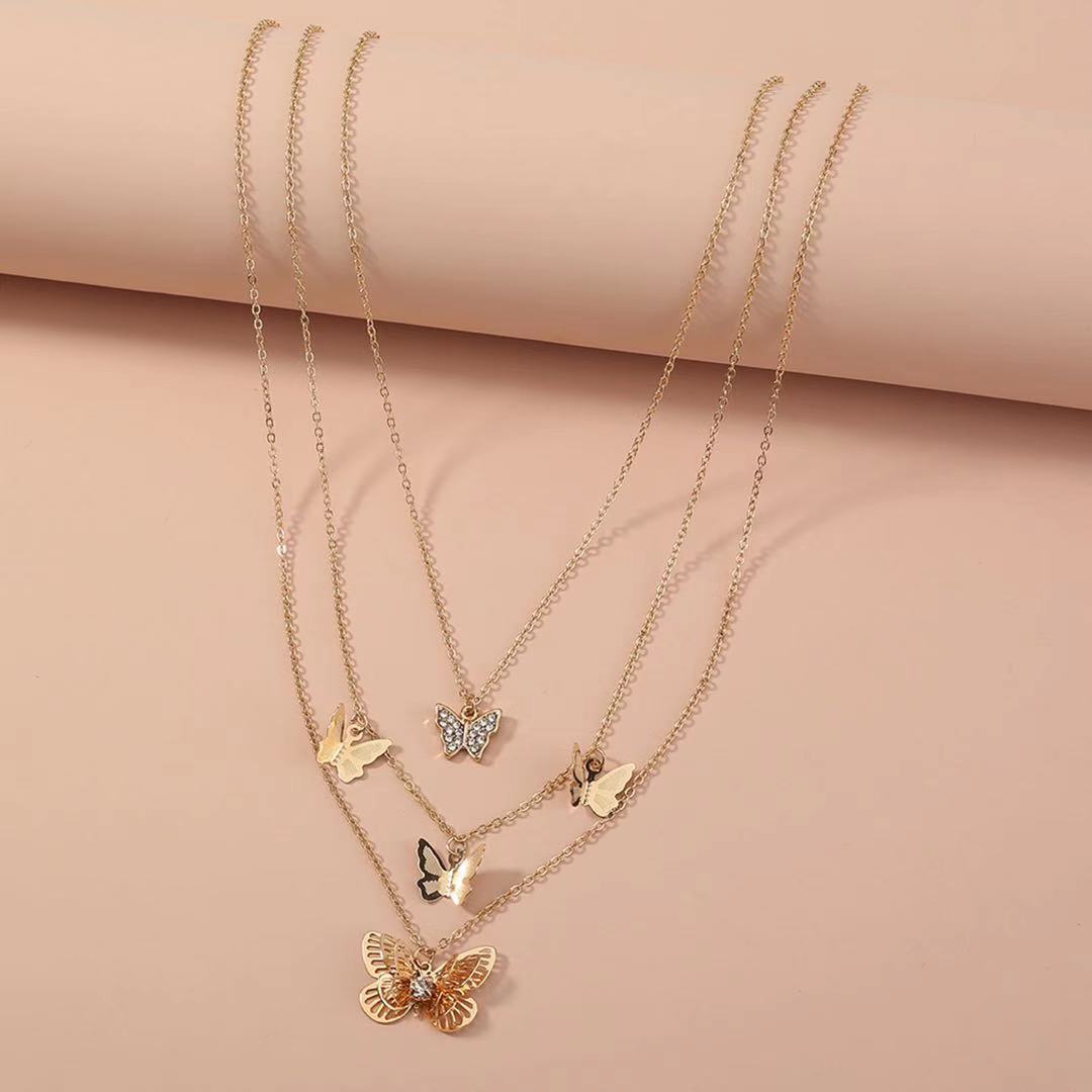 amazon hot sale fashion multilayer set necklace butterfly metal alloy pendant Necklace for women and girls