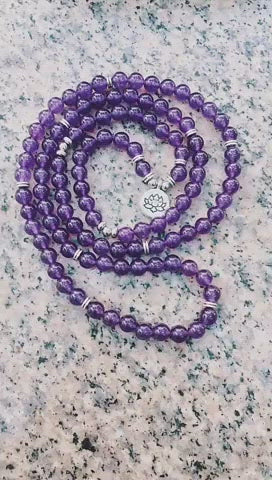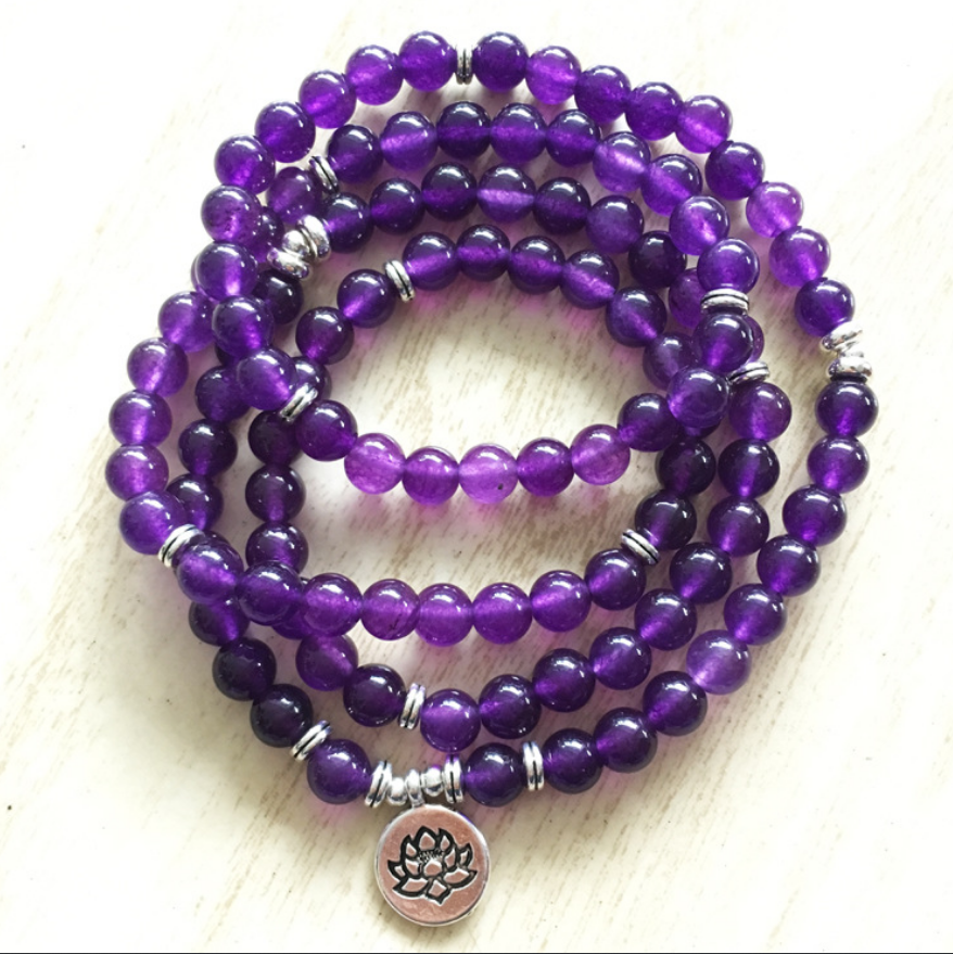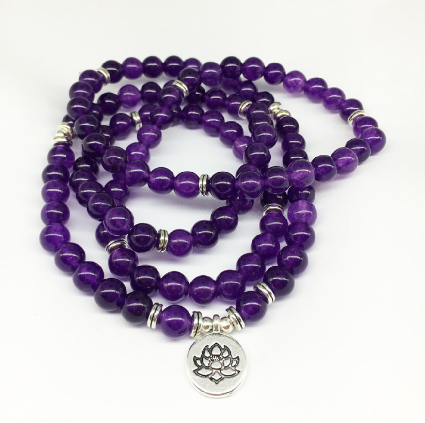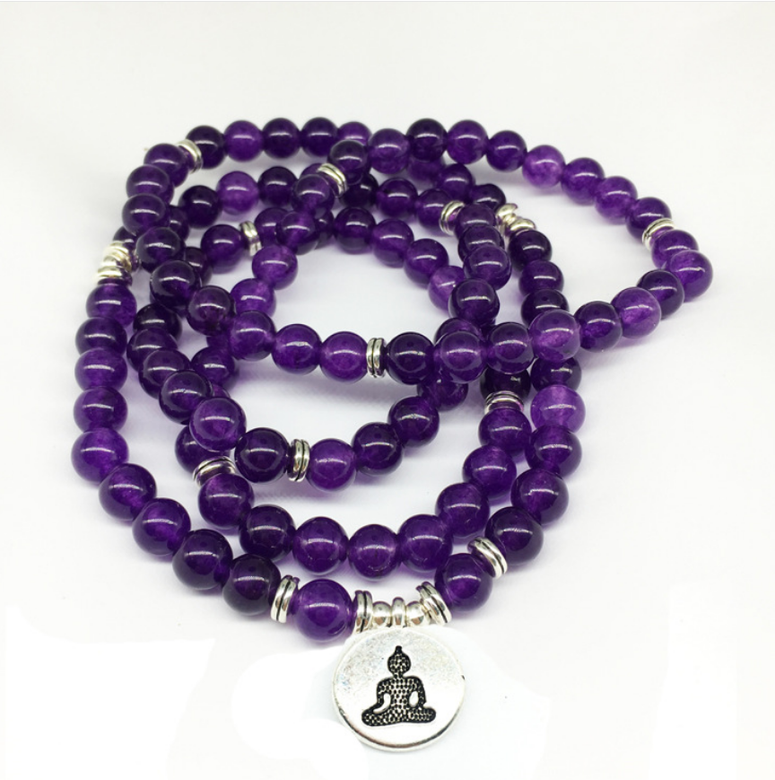 amethyst Natural stone Fashion Bracelet Necklace Elastic Cord Pure Handmade 108 Mala Prayer Meditation Yoga Beaded Jewelry