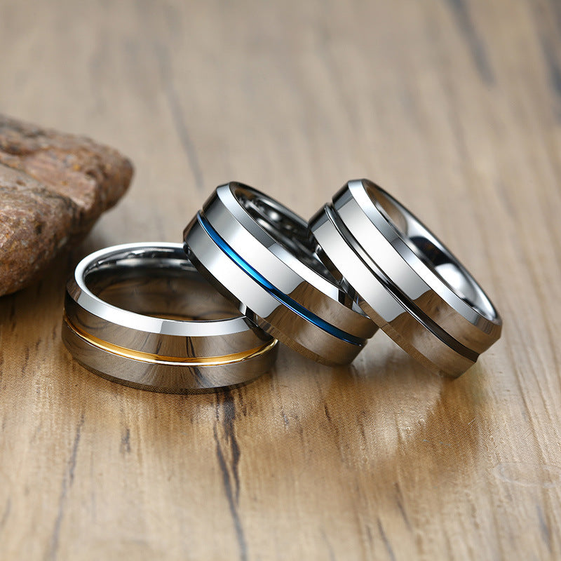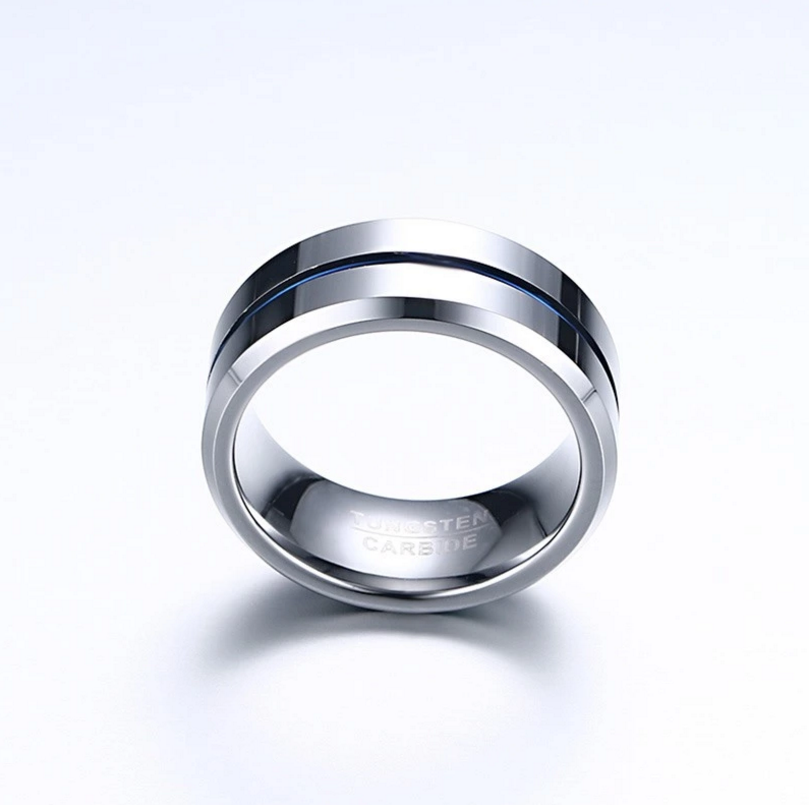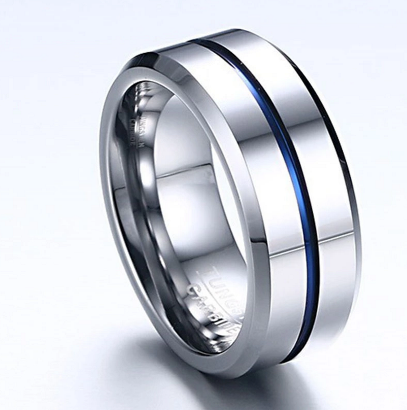 antique tungsten carbide steel ip blue color plated silver finger rings for men 8mm wide