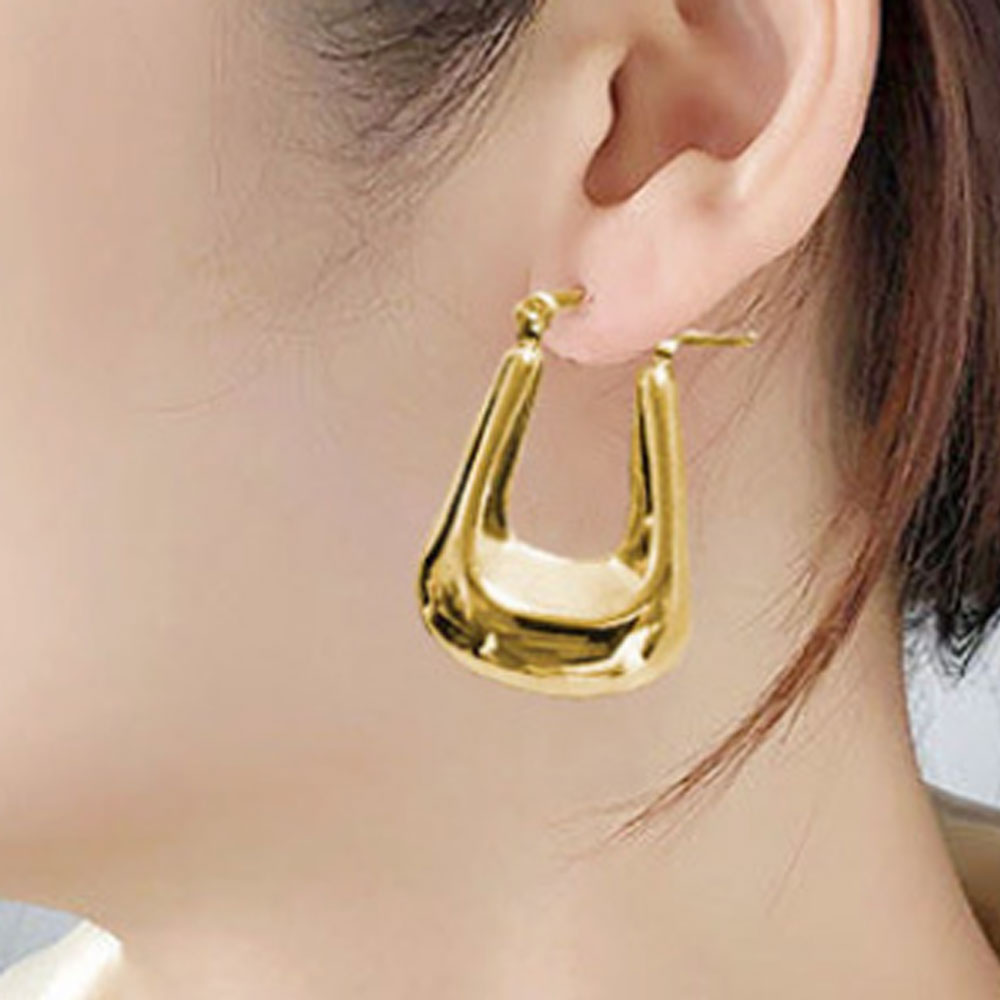 baby girl large thick plain stainless steel hollow dangle hoop earrings18k gold plated women earring jewelry