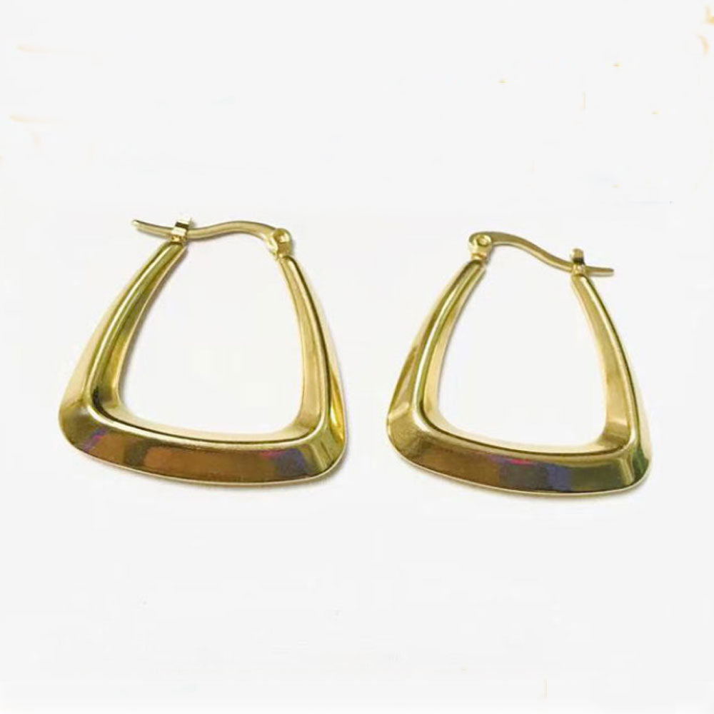 baby girl large thick plain stainless steel trapezoid hoop dangle earrings 18k gold plated women earring jewelry