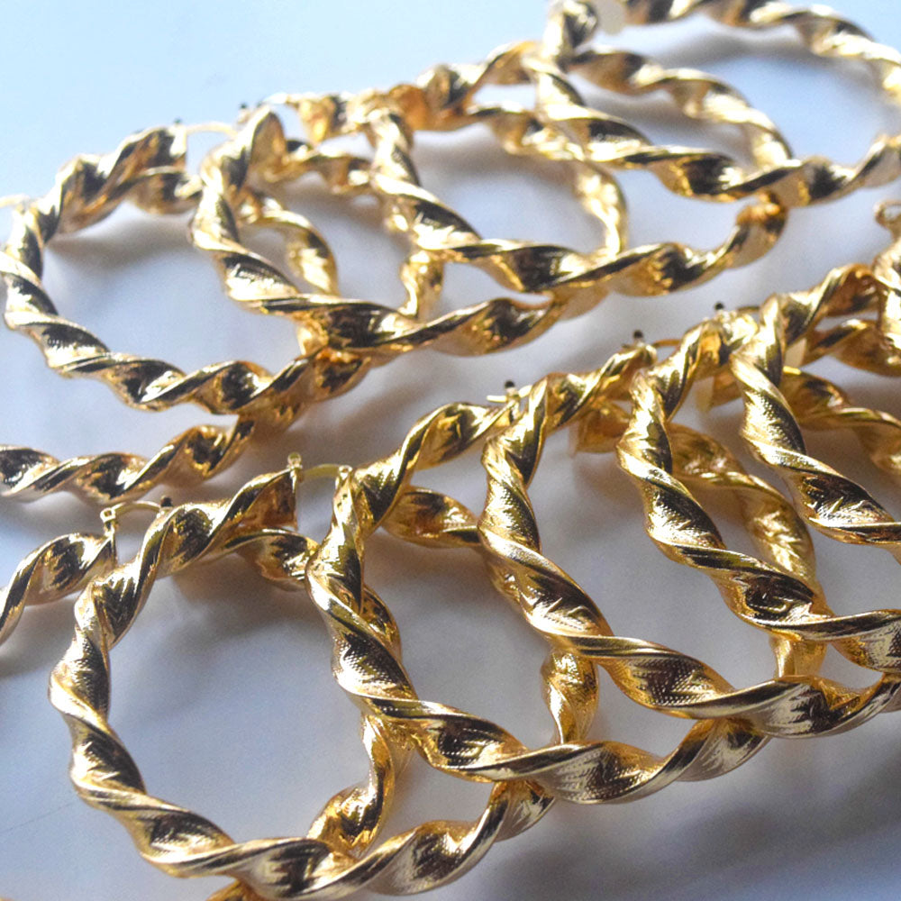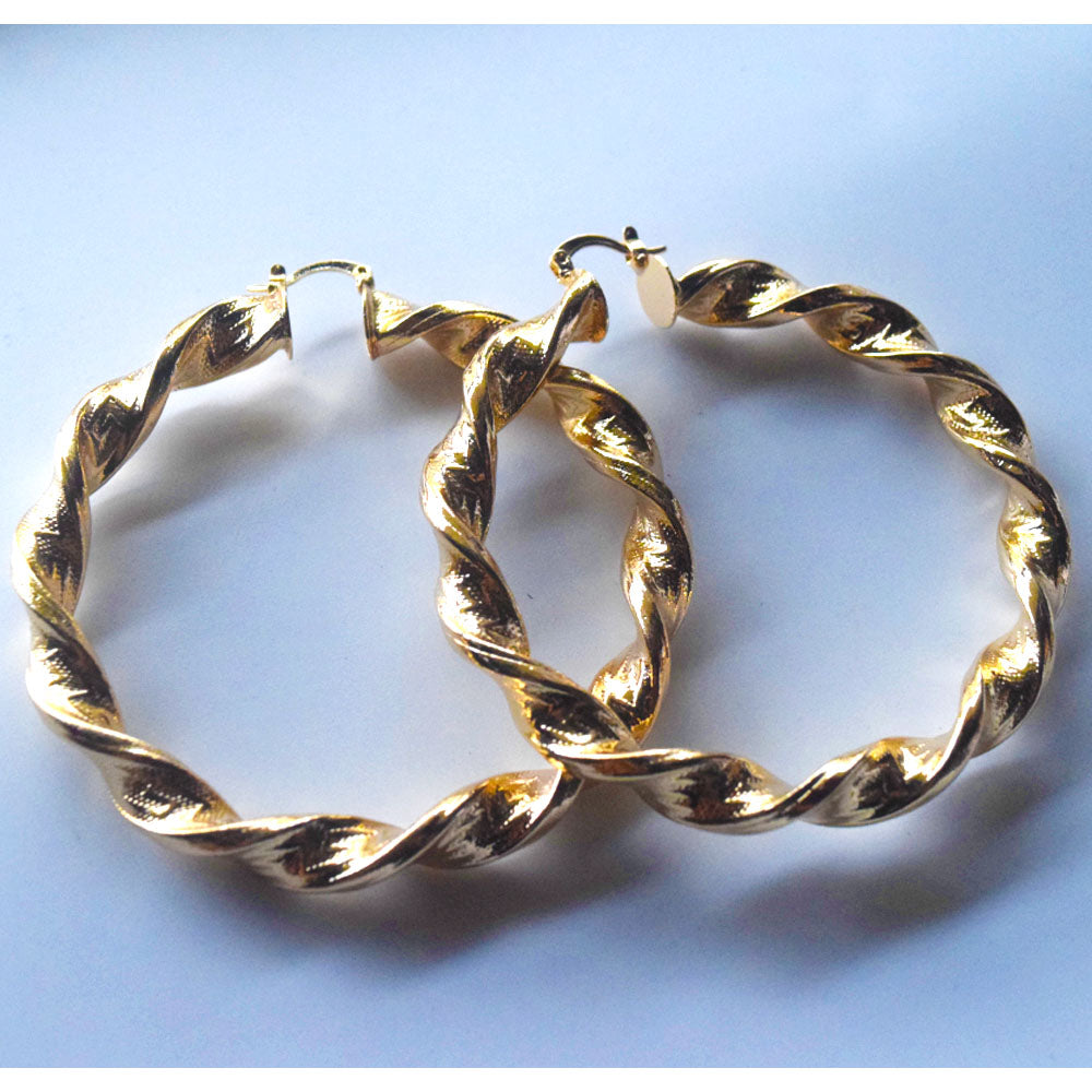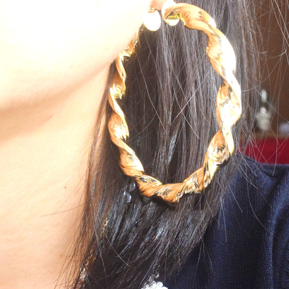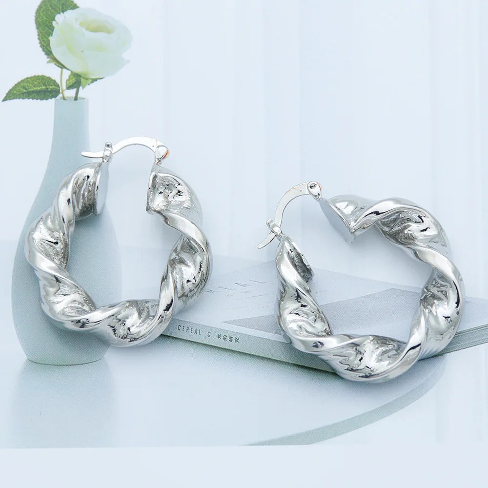big brass alloy twisted chunky circle round earring women jewelry earrings gold and silver two colors
