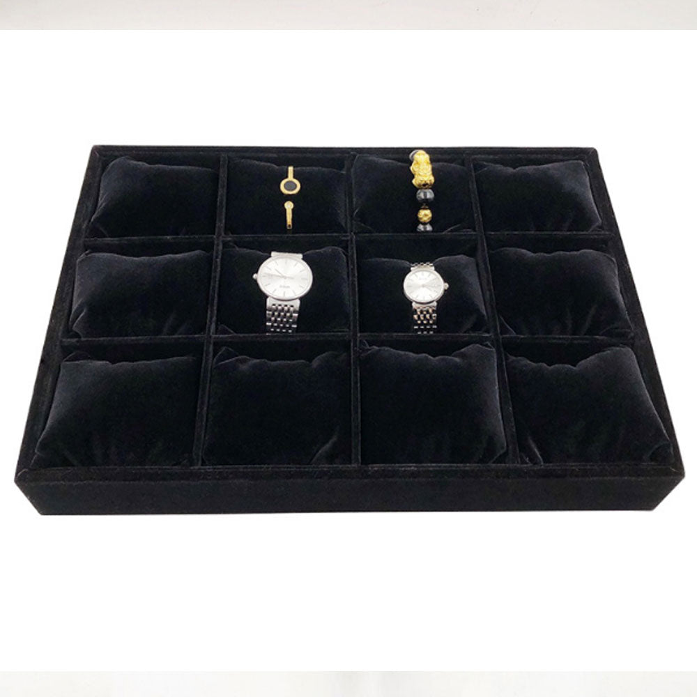 black and red color velvet stackable jewelry display tray organizer with pillow for bracelet and watch wholesaler