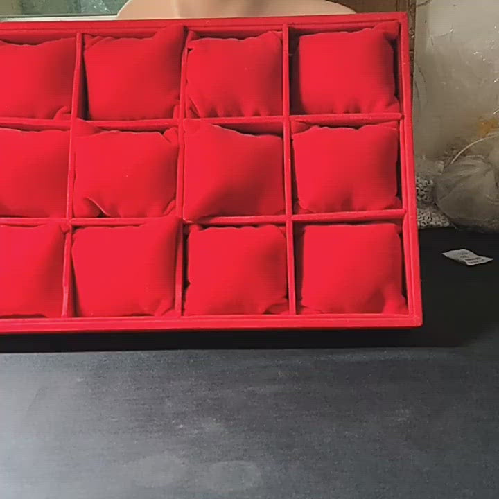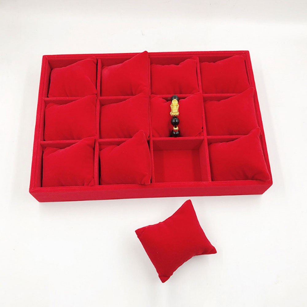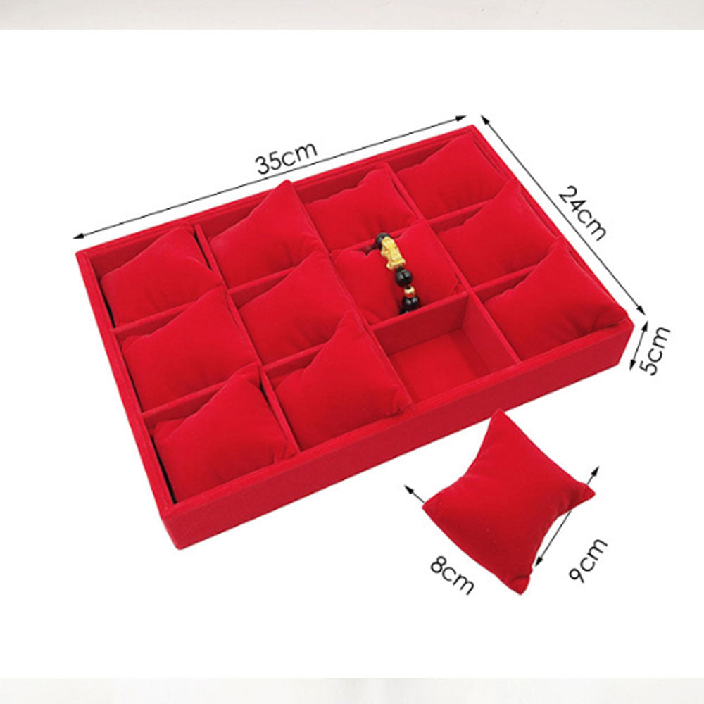black and red color velvet stackable jewelry display tray with pillow for bracelet and watch wholesaler