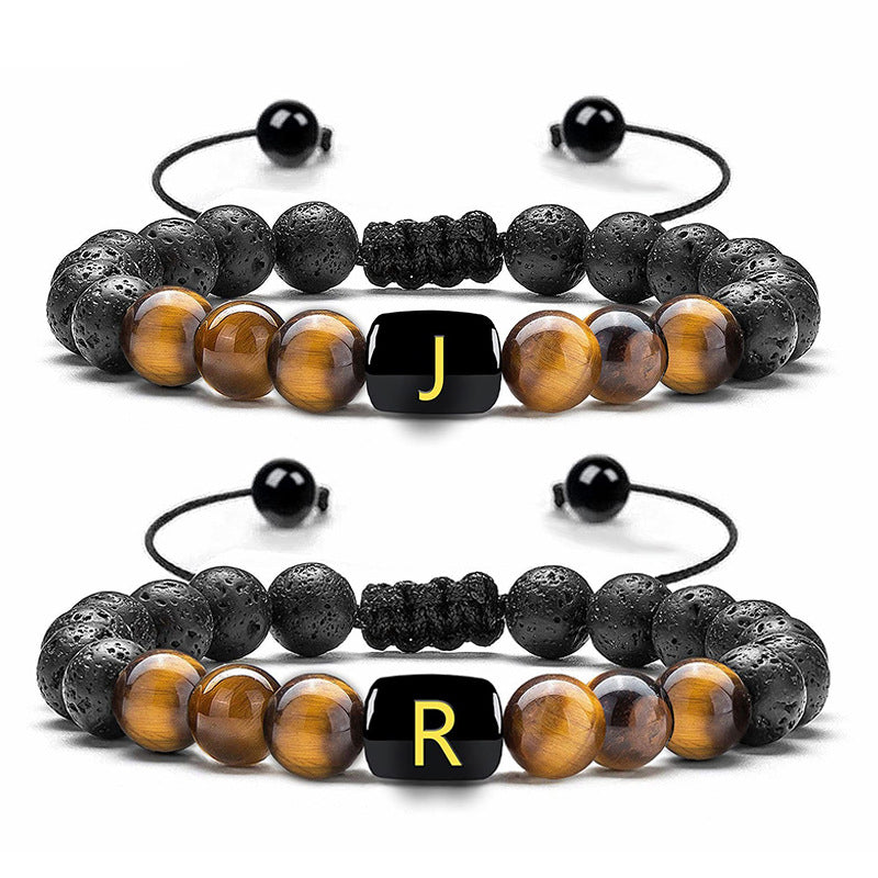 black lava rock tiger eye gemstone bead initial letter alphabet charm bracelet handmade bracelet men China supplier manufacturer