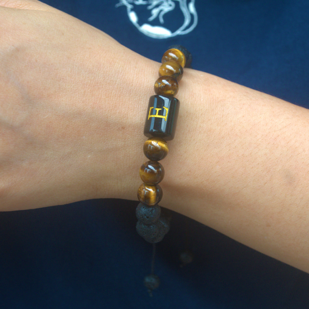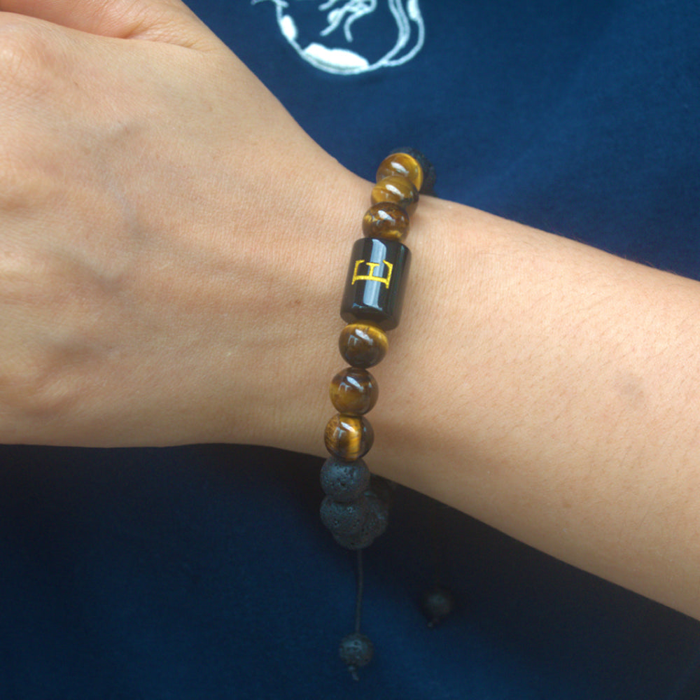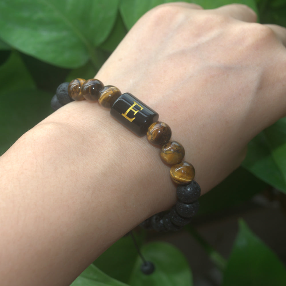 black lava rock tiger eye gemstone bead initial letter alphabet charm bracelet handmade bracelet men China supplier manufacturer