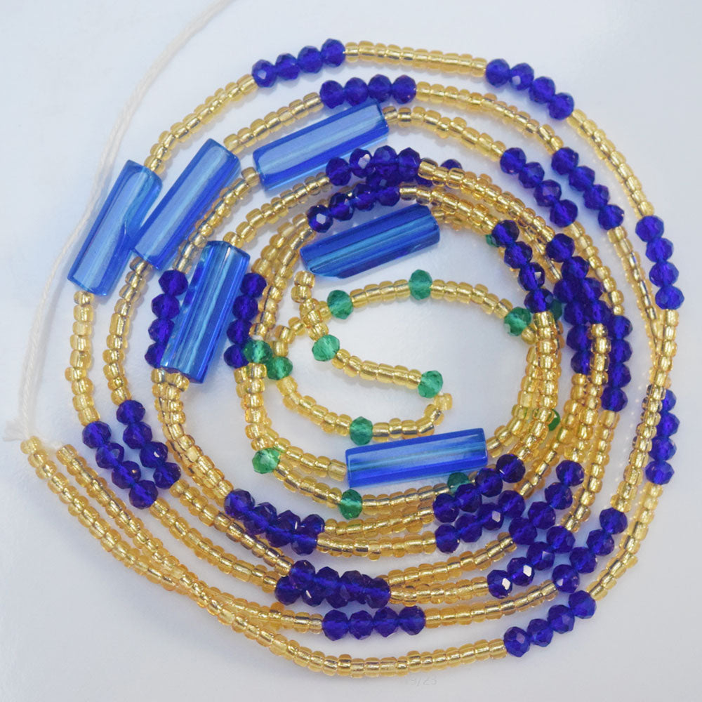 blue tube crytal charm weightloss double string cotton tie on african waist beads belly chain body jewelry women