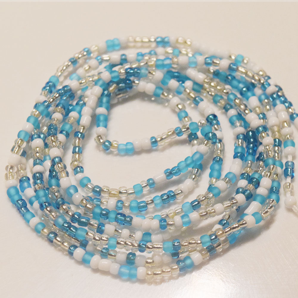 blue white silver mix fashion african mix glass seed beads tie on waist beads belly body chain double cotton string for ladies