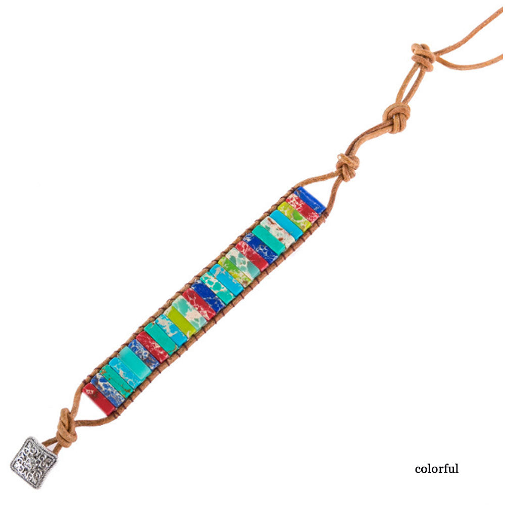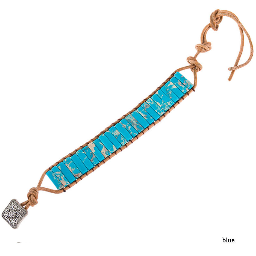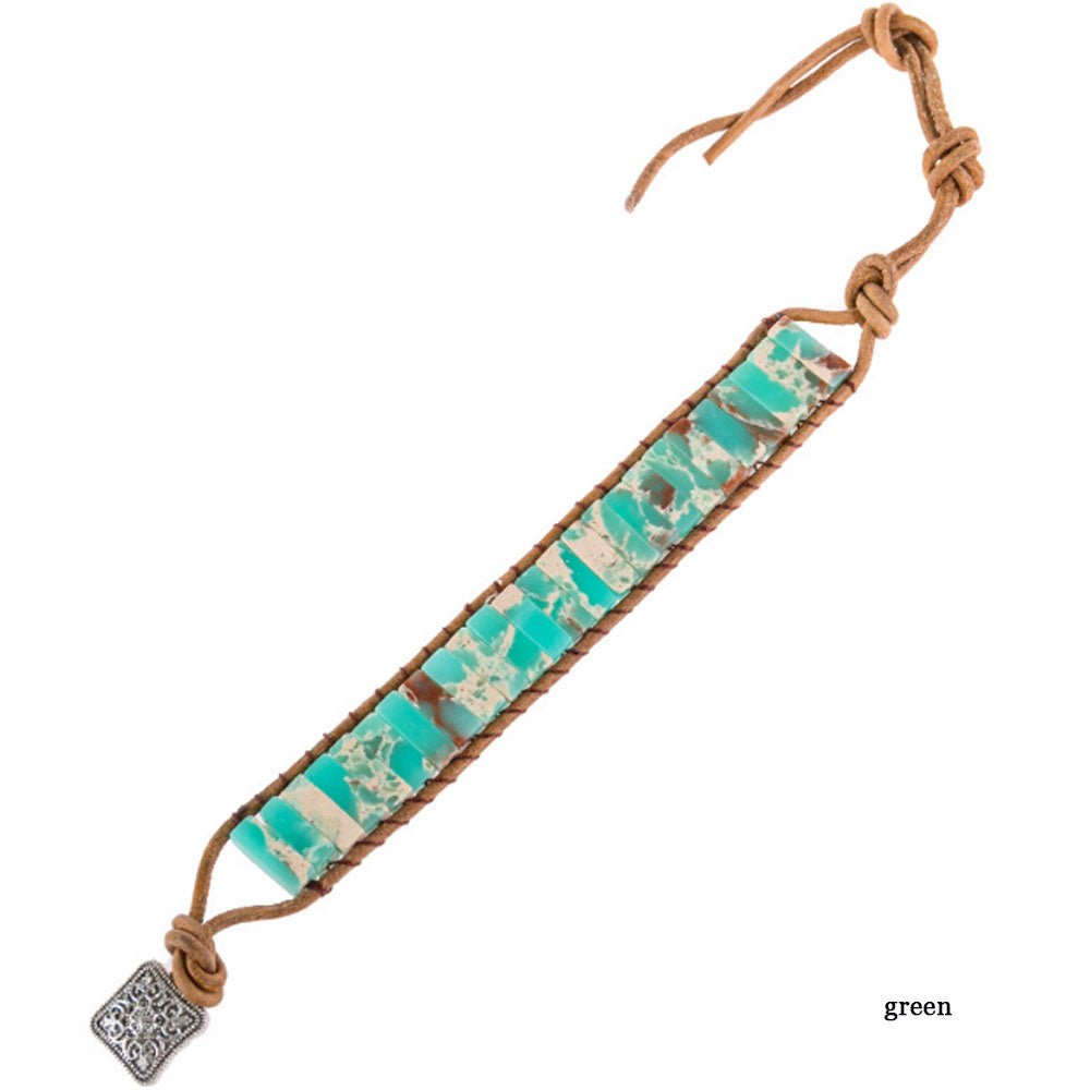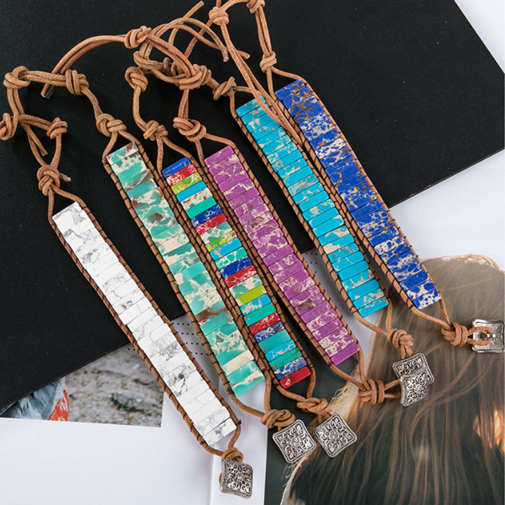 Bohemian bar Turquoise Beads Natural Stone Leather Cord Wide Design Adjustable handmade 7 chakra Tile Wrap bracelet jewelry