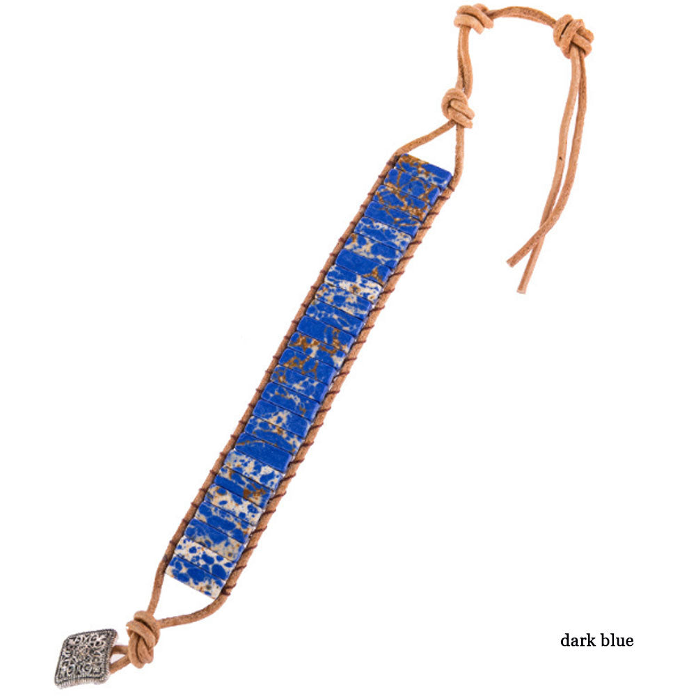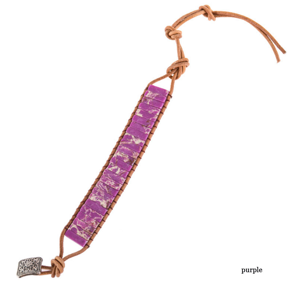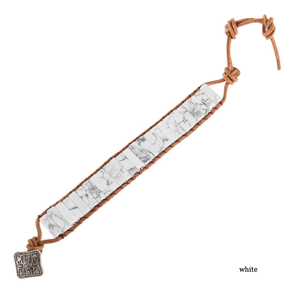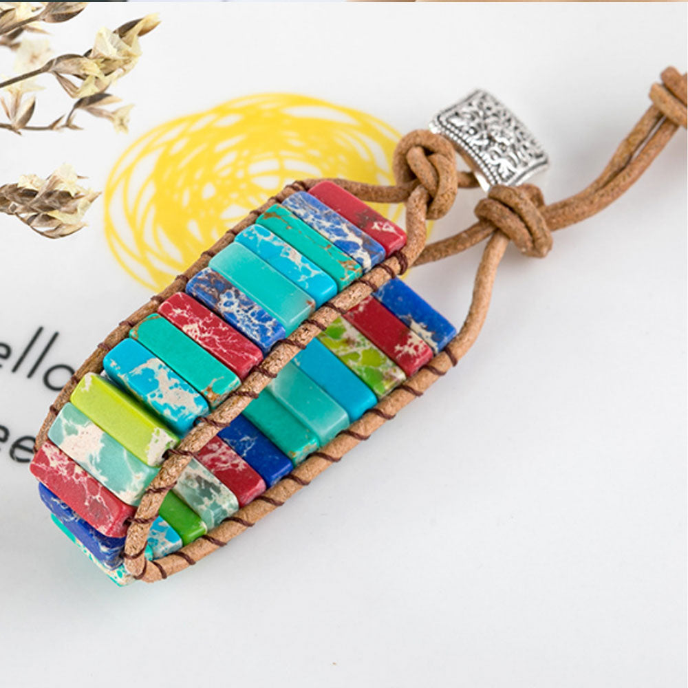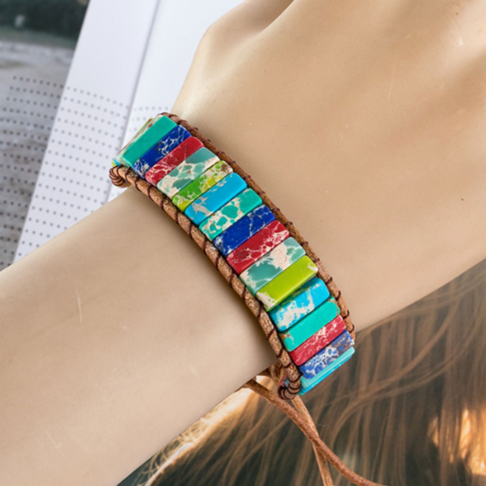 Bohemian bar Turquoise Beads Natural Stone Leather Cord Wide Design Adjustable handmade 7 chakra Tile Wrap bracelet jewelry