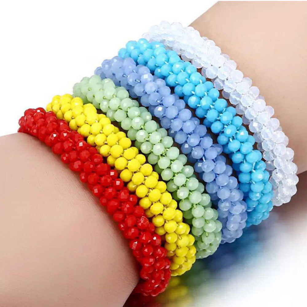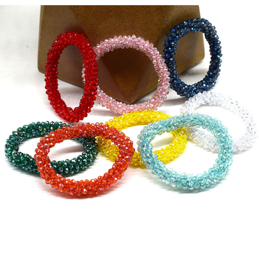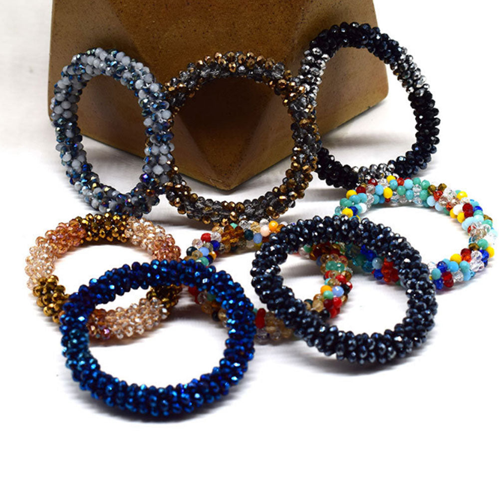 bohemian nepal glass faceted crystal ball beads beaded adjustable elastic bangle bracelets jewelry hair ties for women jewelry