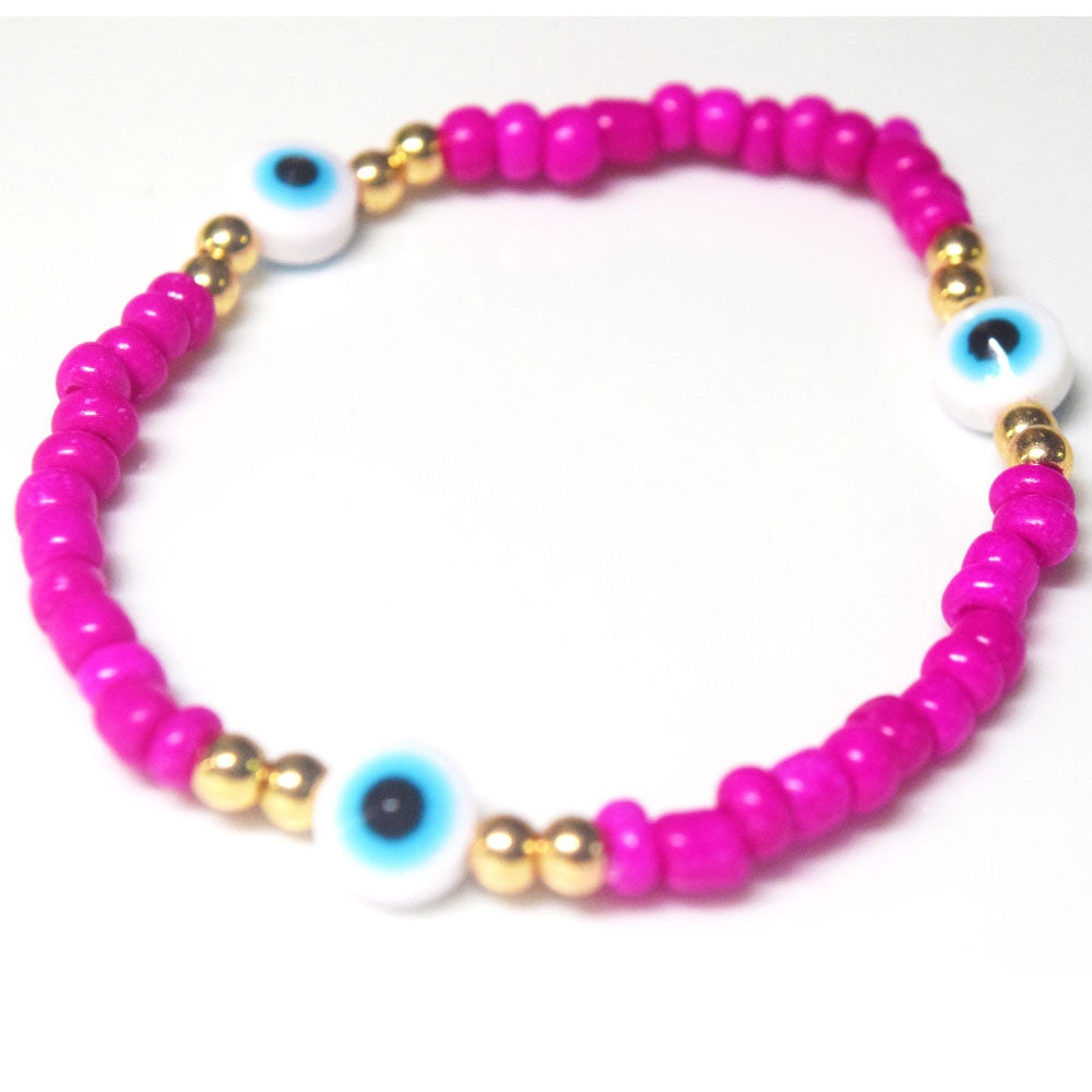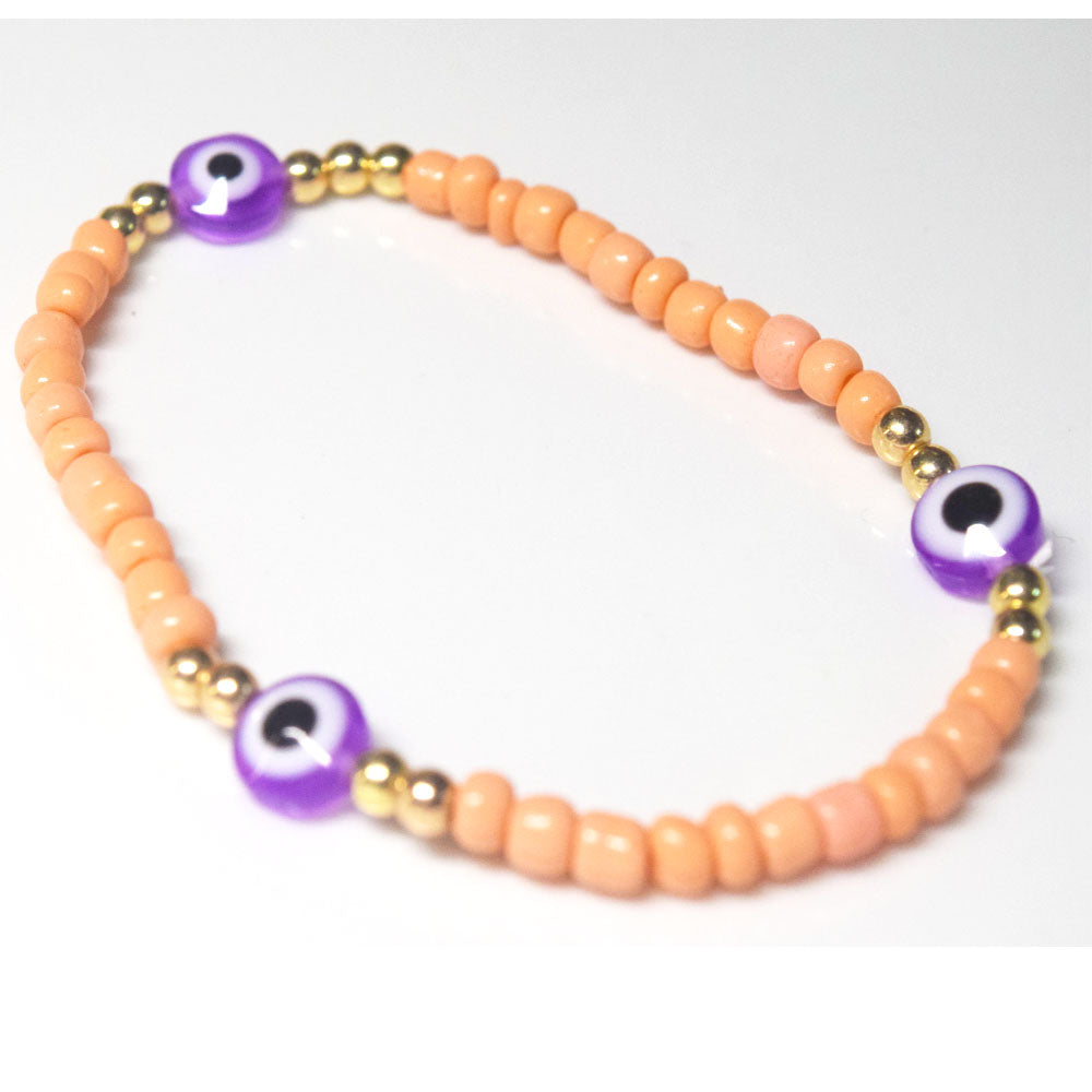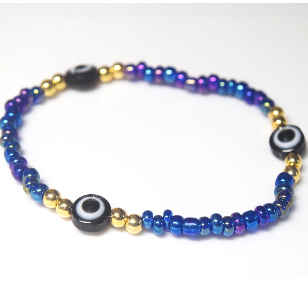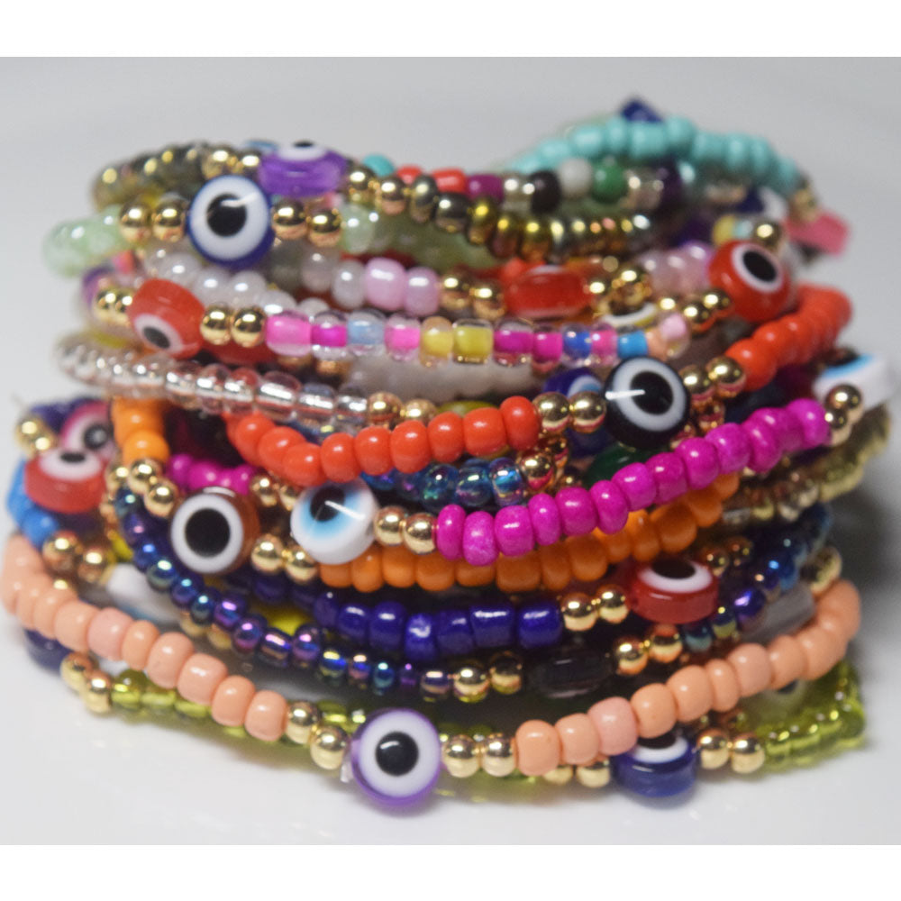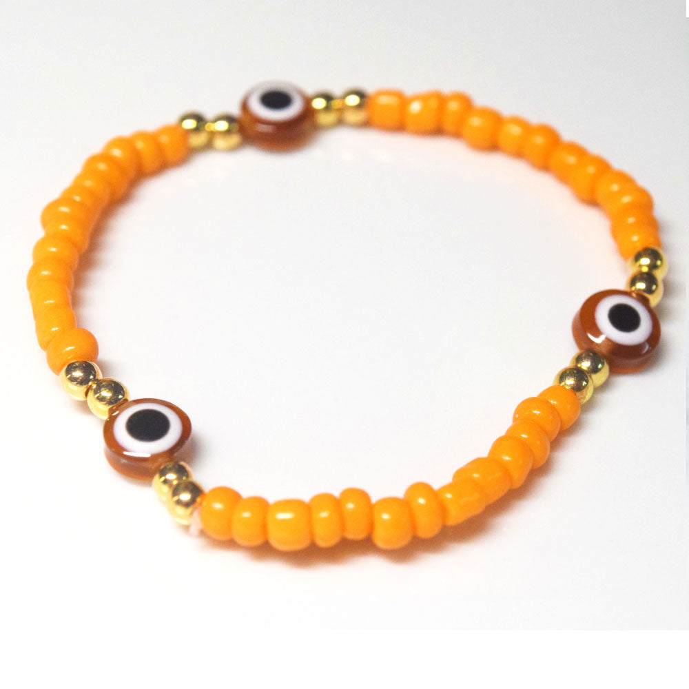 bohemian style stackabele handmade glass rice seed beads beaded elastic devil eye bead charm bracelet jewelry