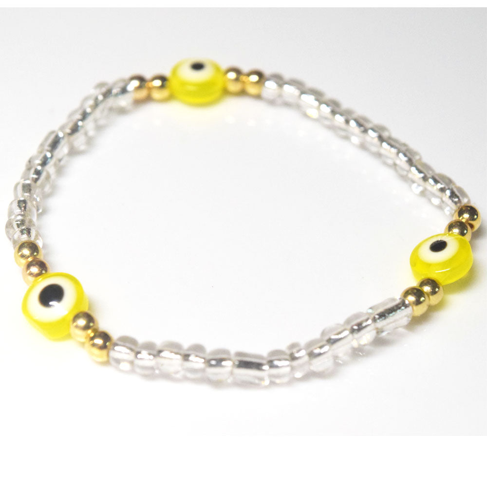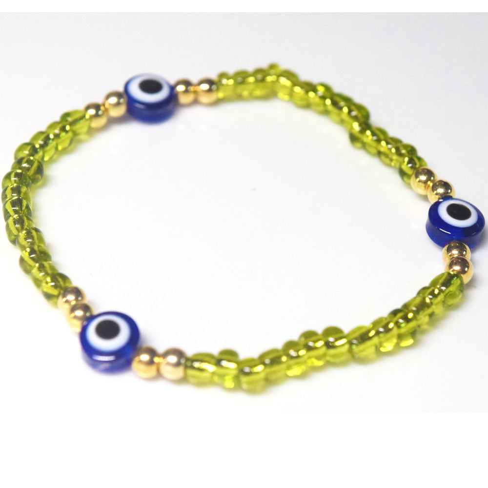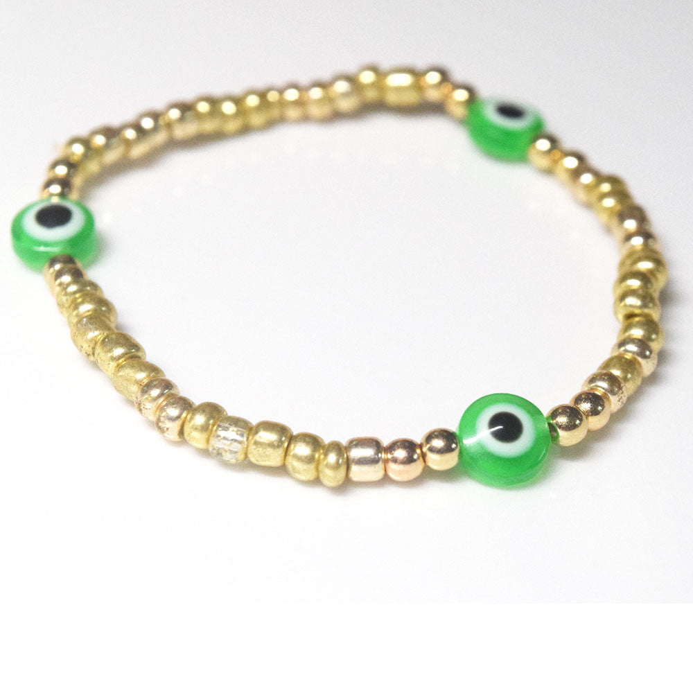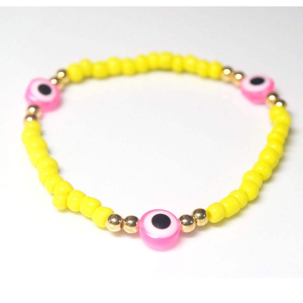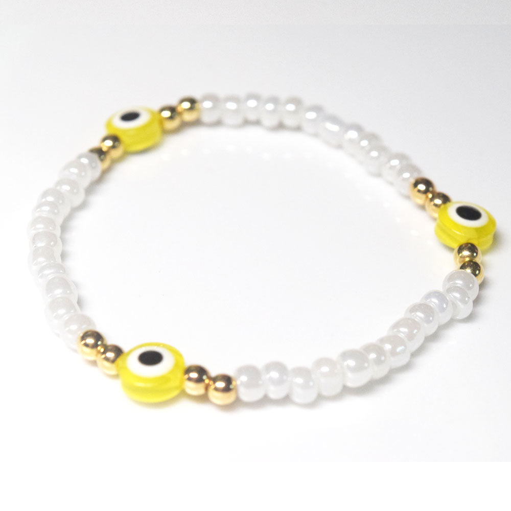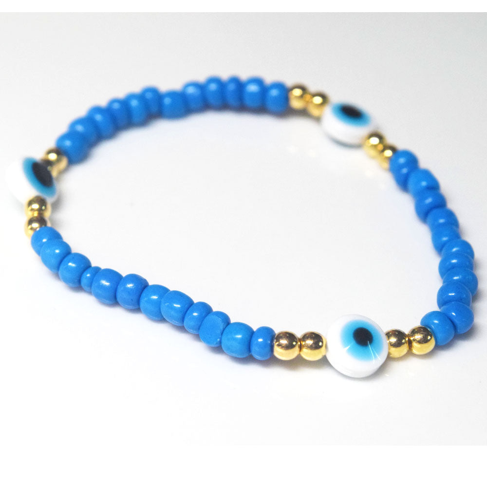 bohemian style stackabele handmade glass rice seed beads beaded elastic devil eye bead charm bracelet jewelry