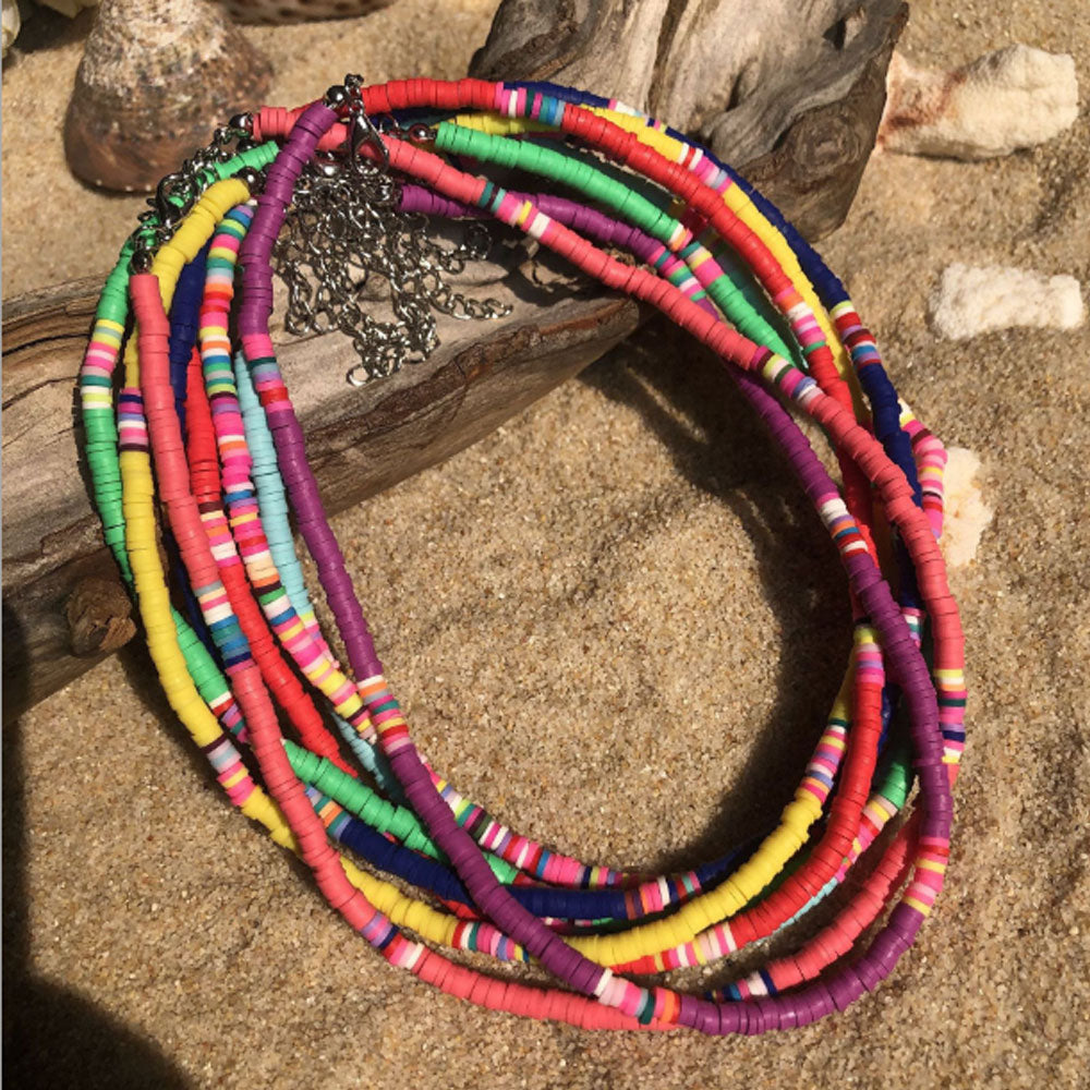 boho best friend colors 4mm soft polymer clay bead beaded fashion jewellery necklace 14 inches for girl