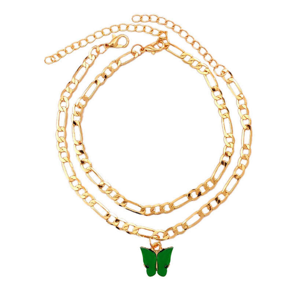 boho double layered gold cuban link chain butterfly charm pendant cuban link figaro anklet jewelry