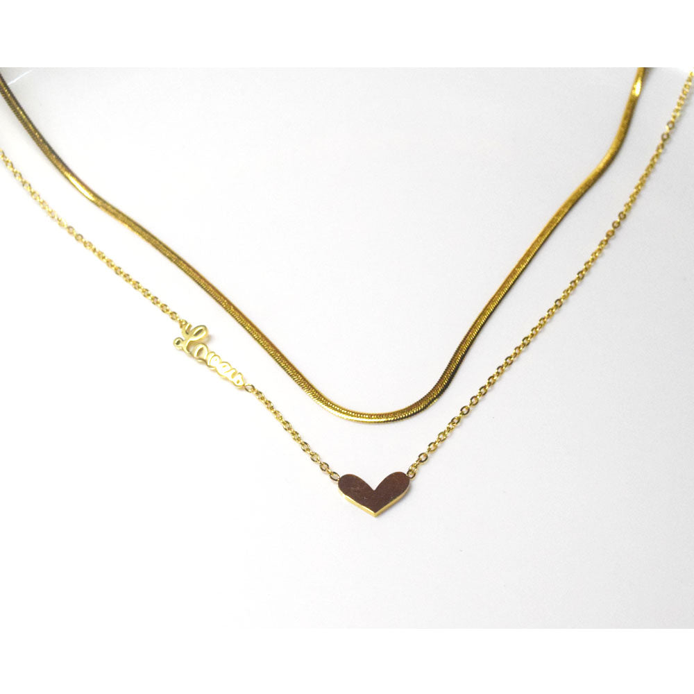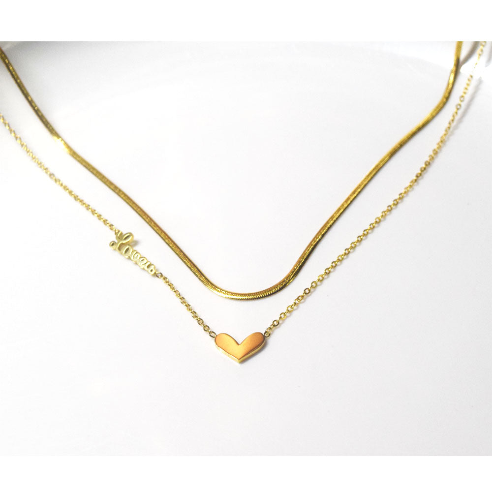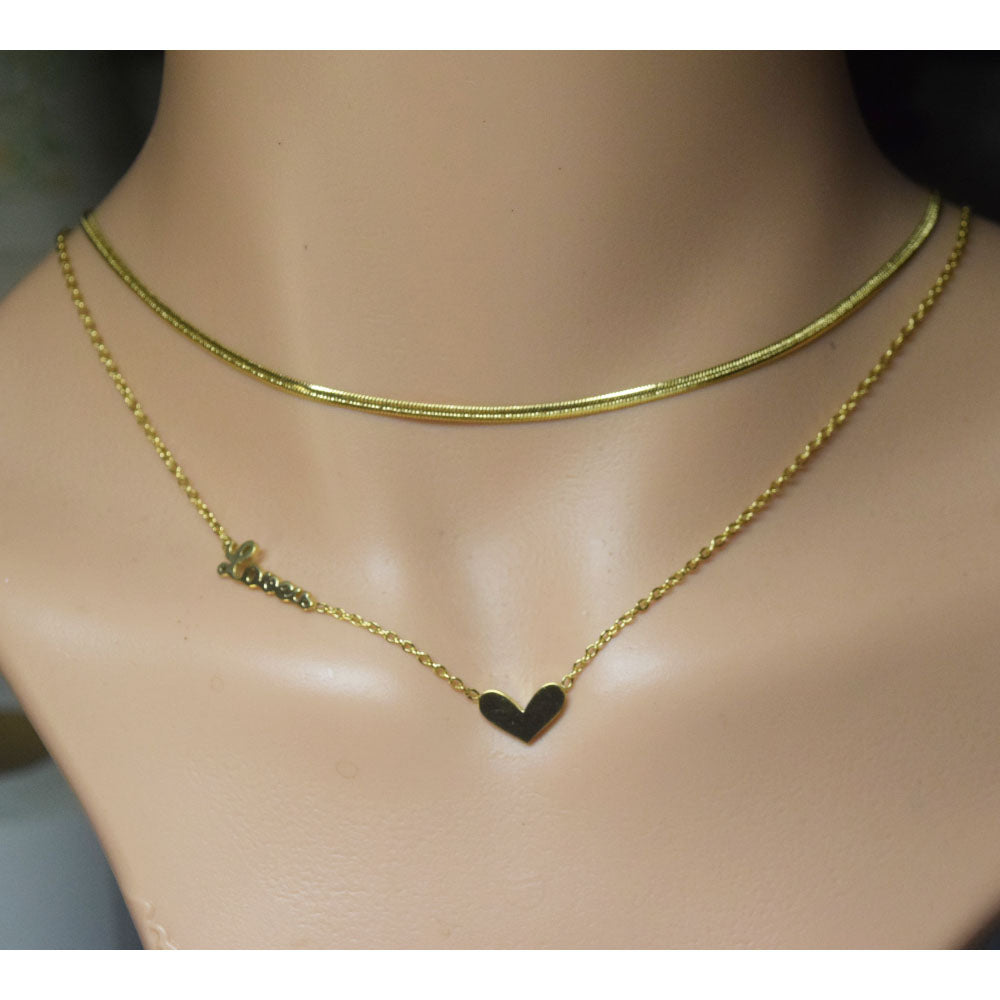 boho fashion stainless steel snake chain two layers birthday snake chain link heart pendant necklace women 18k gold plated