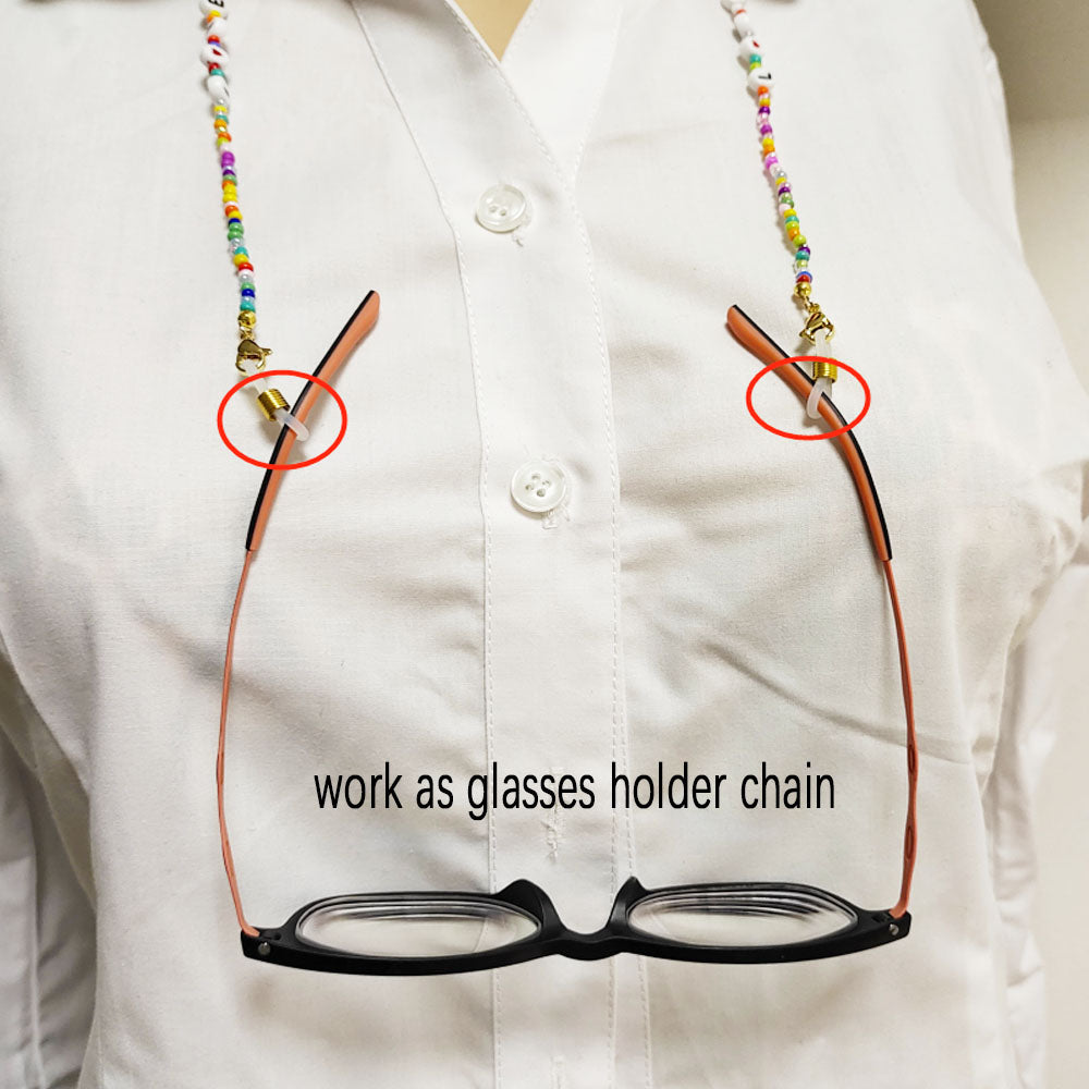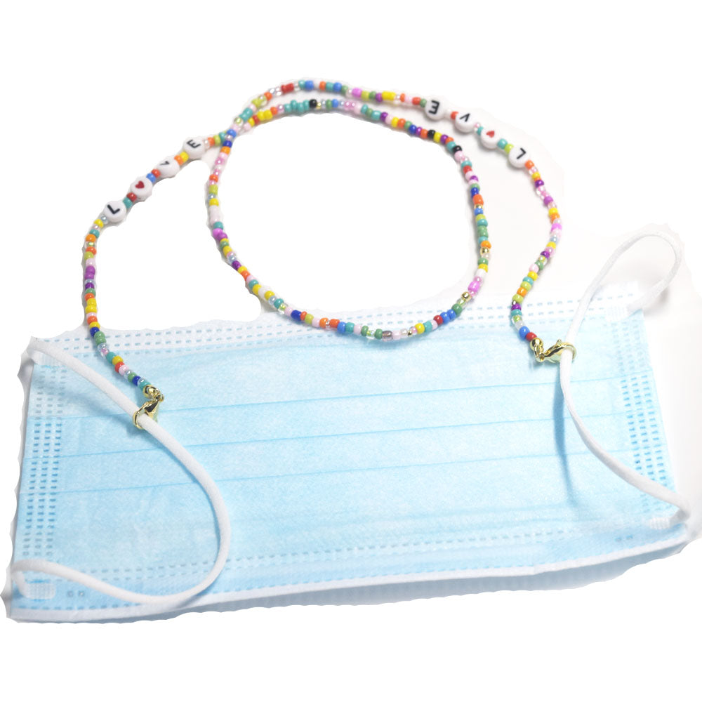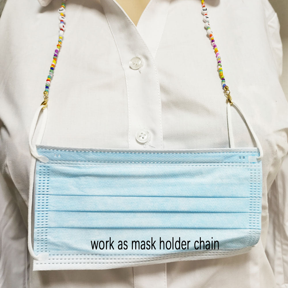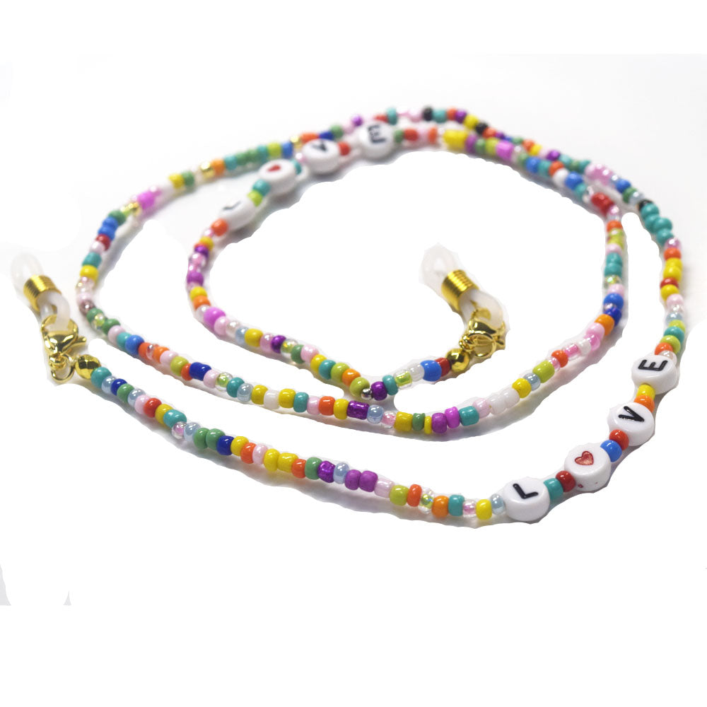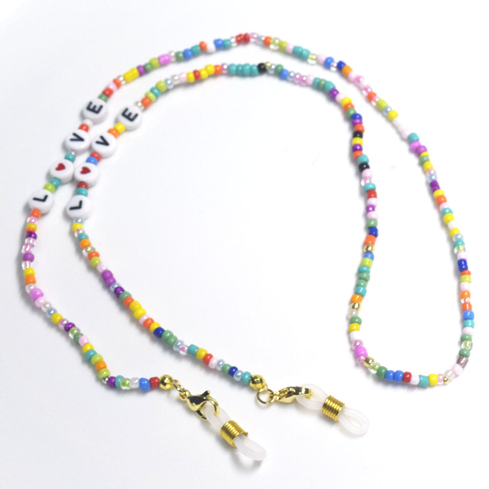 boho handmade colorful glass seed beads acrylic LOVE Letter Sun Glasses m-ask holder Chain face wearing Jewelry For Femme