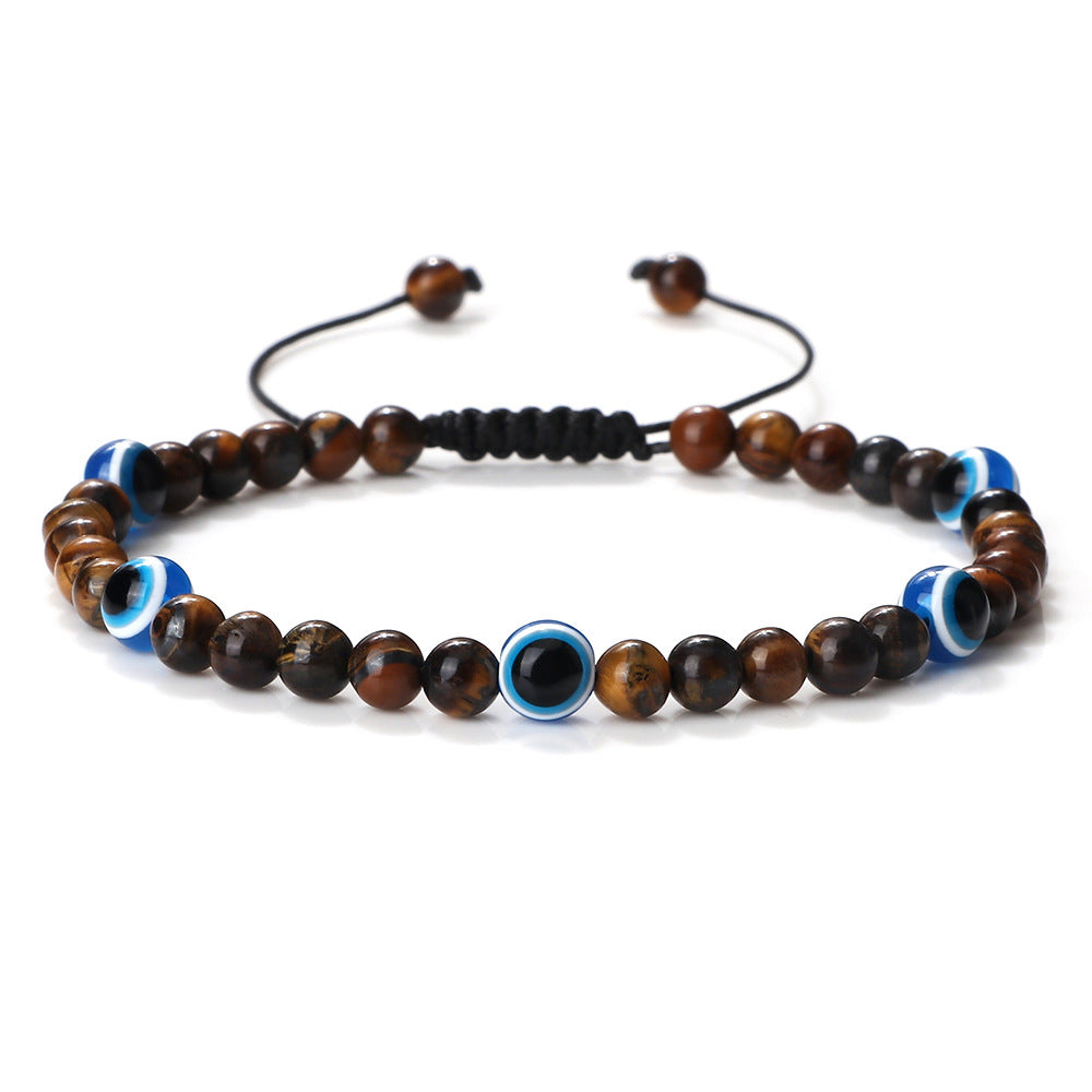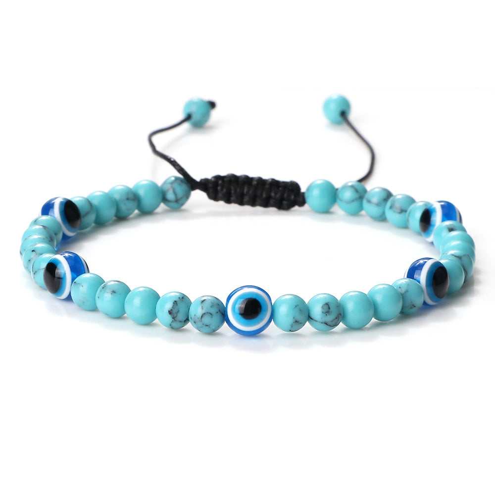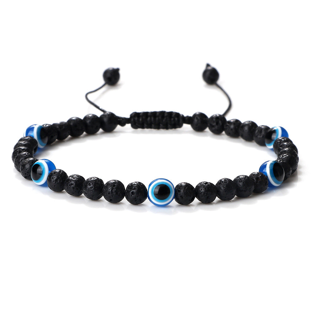 boho healing energy natural gemstone crystal blue green black lava stone evil eyes charm bracelet design for women everyday
