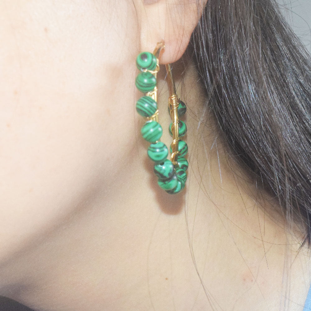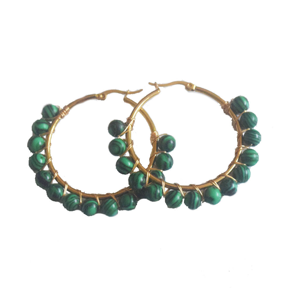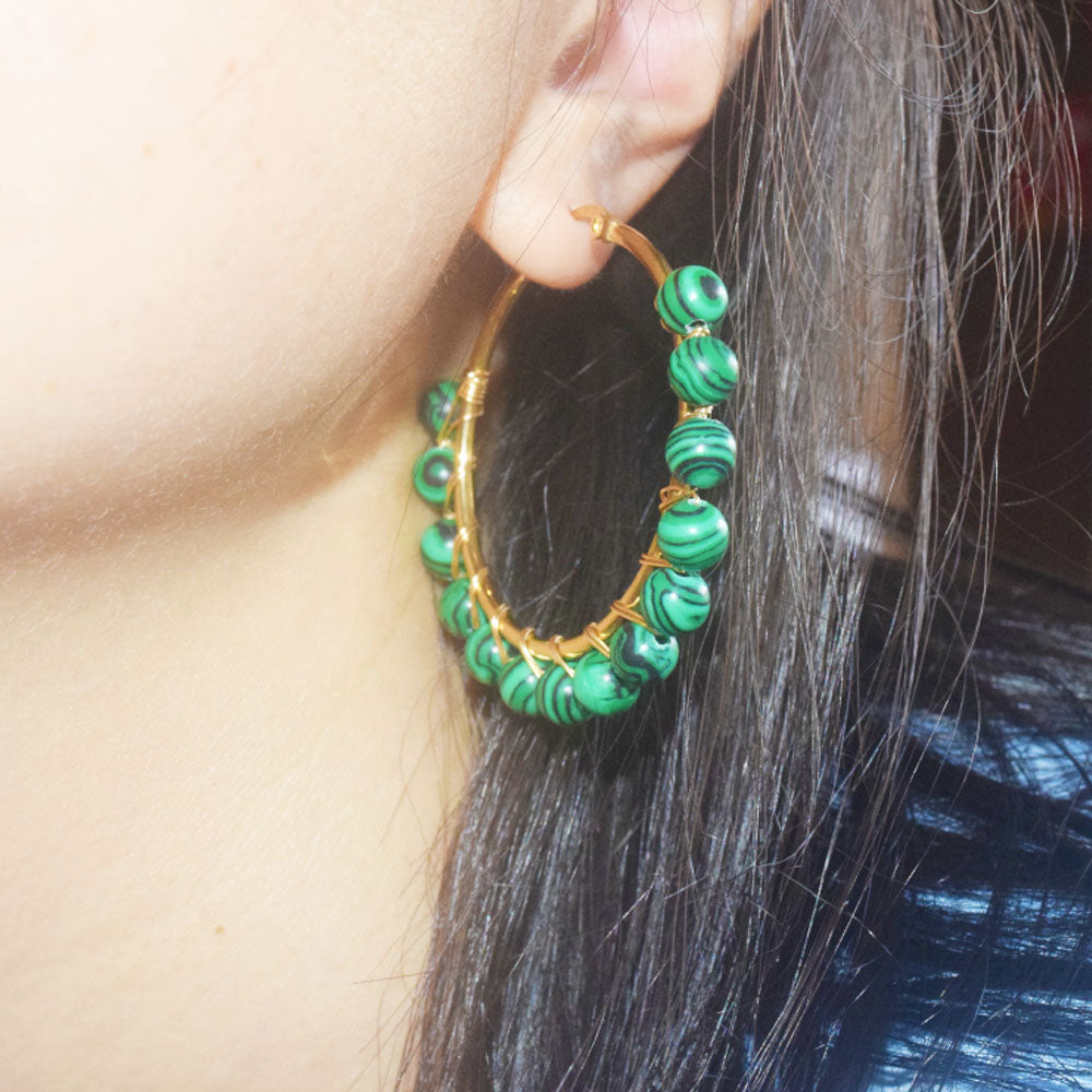 boutique stainless steel gold natural gemstone black green red stone rainbow hoops earrings women earring jewelry