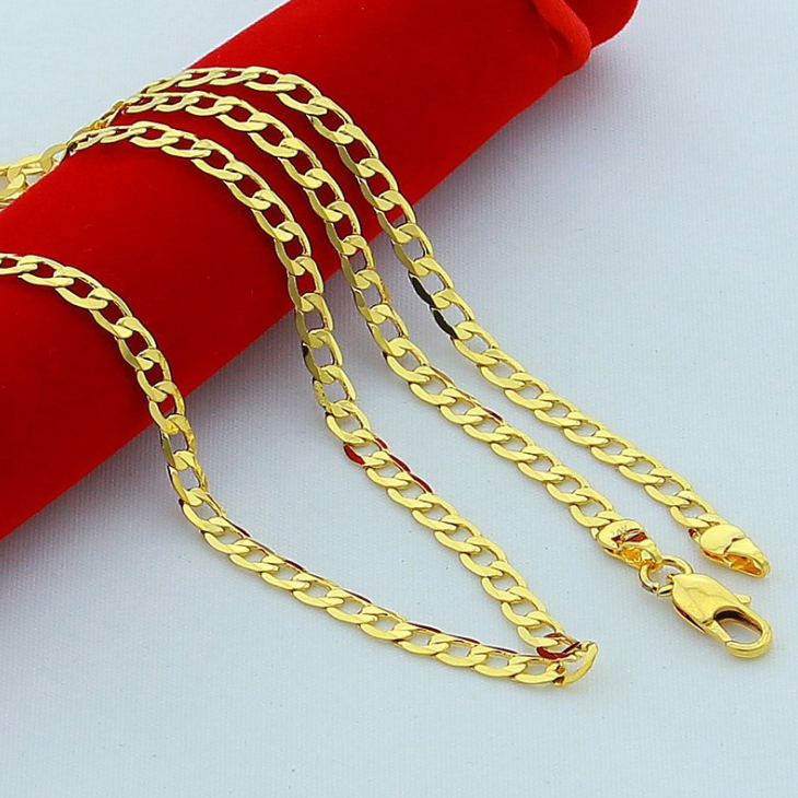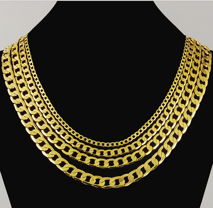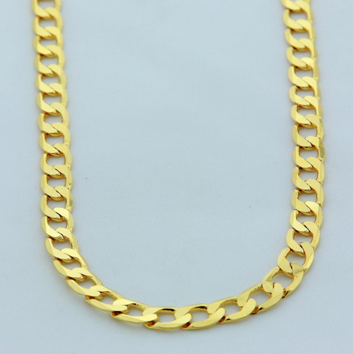 brass alloy 24K GOLD plated men cuban curb link gold chain necklace jewelry