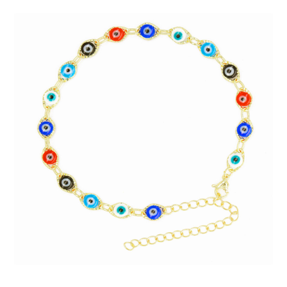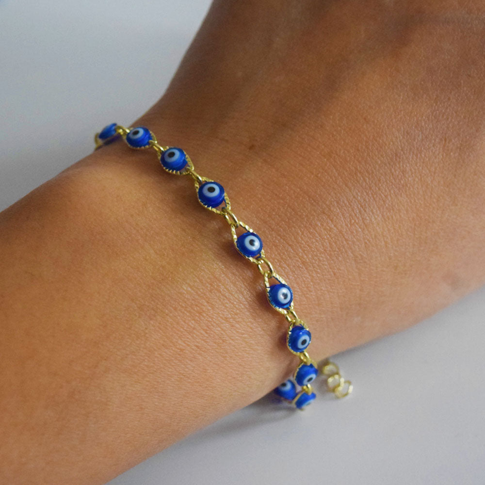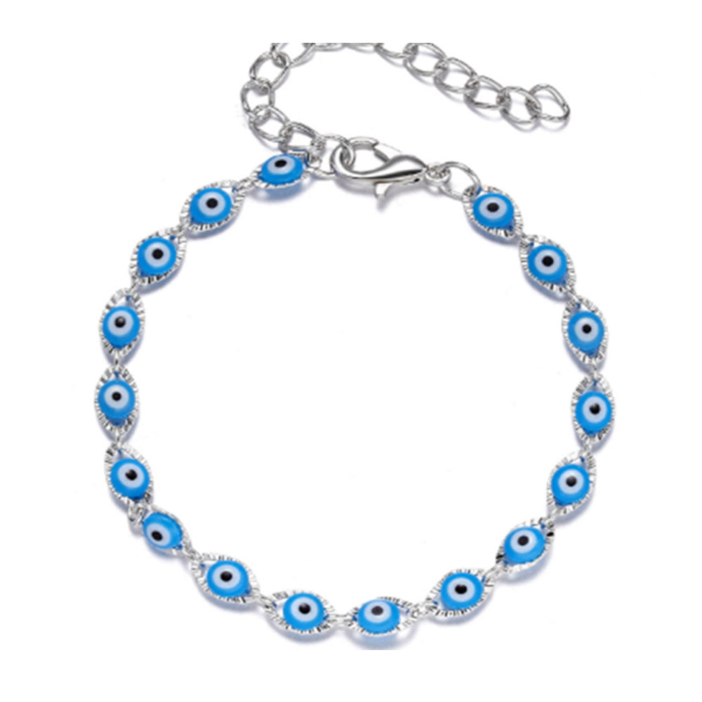 brass alloy blue turkish evil eyes bead beaded chain charm bracelet anklet and necklace jewelry