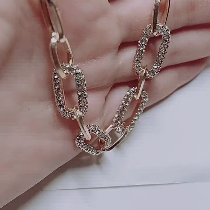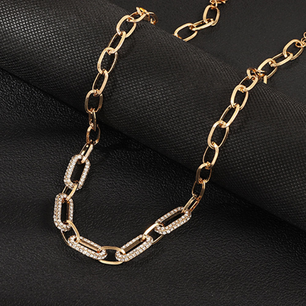chunky alloy chain necklace with rhintstone beads paving