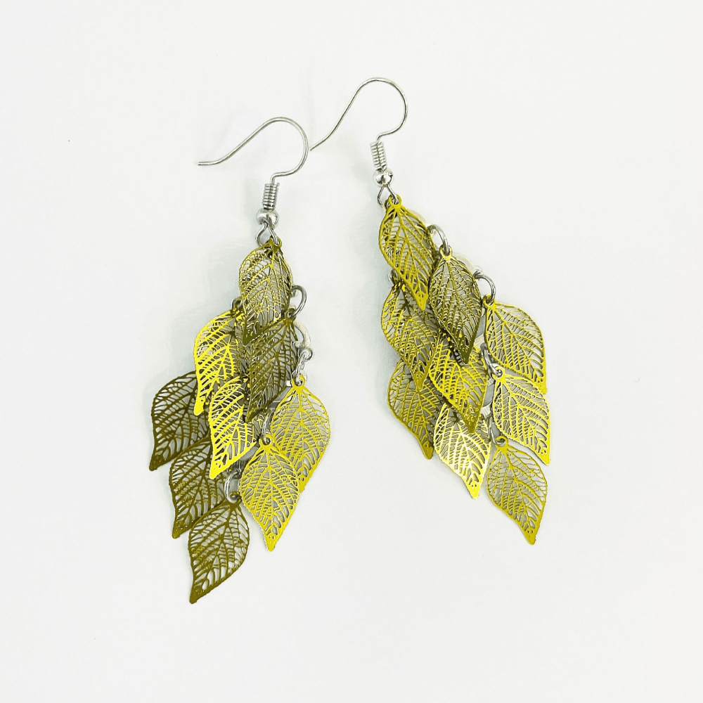 brass alloy multi colors tropical leaf earrings leaves women dangle drop earring