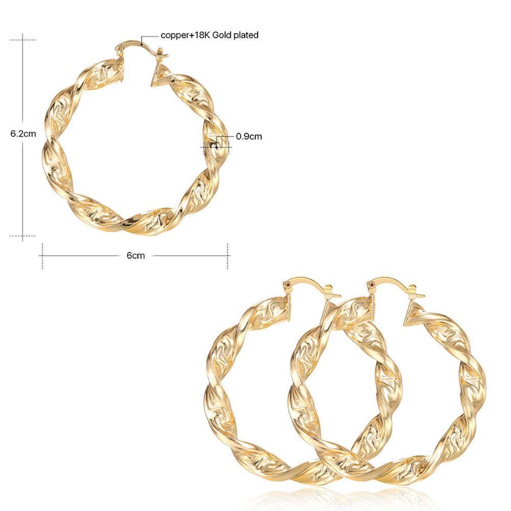 brass alloy with 18k gold plated korean fashion thick textured earrings women hoop jewelry