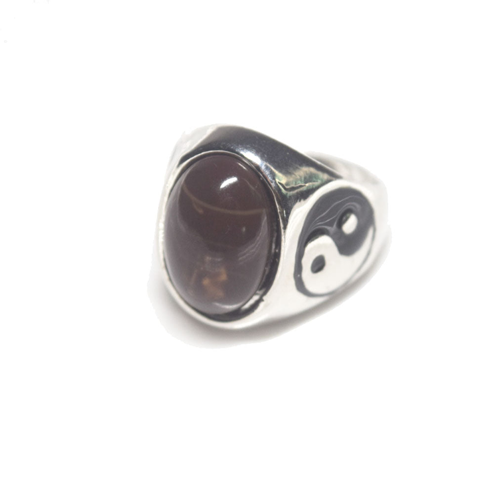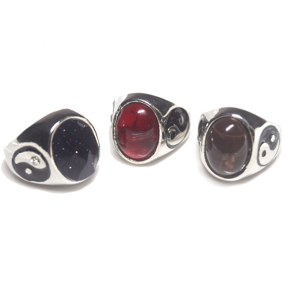 brass alloy with precious crystal natural stone yinyang ring men finger rings jewelry