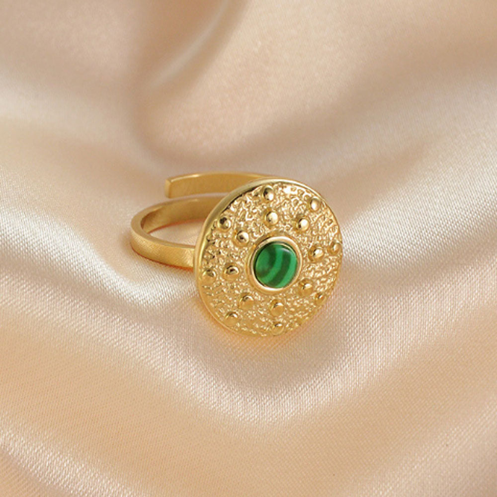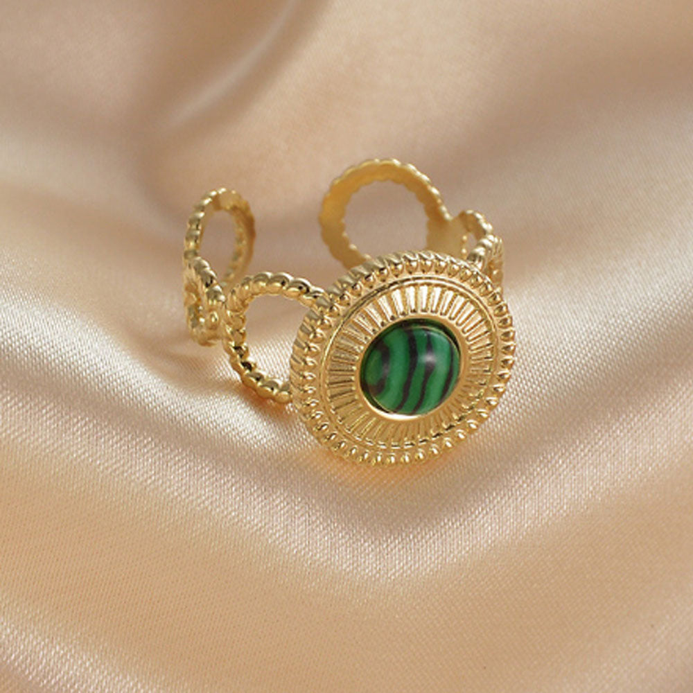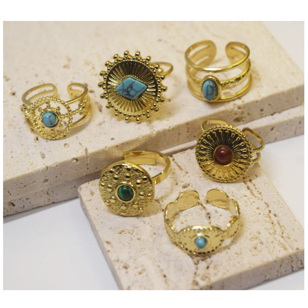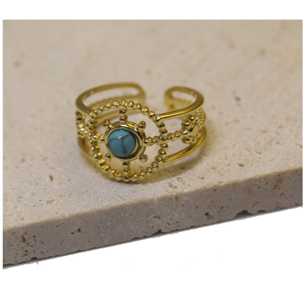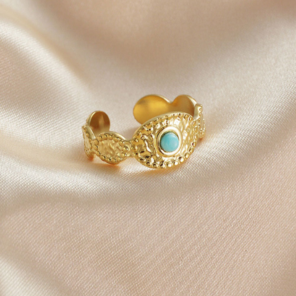 bulk waterproof chic eternity stainless steel gemstone paved turquoise 14k gold plated finger ring jewelry open cuff rings