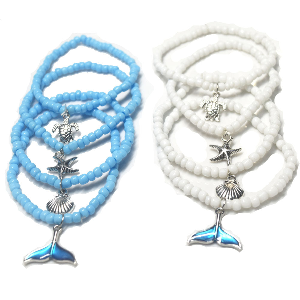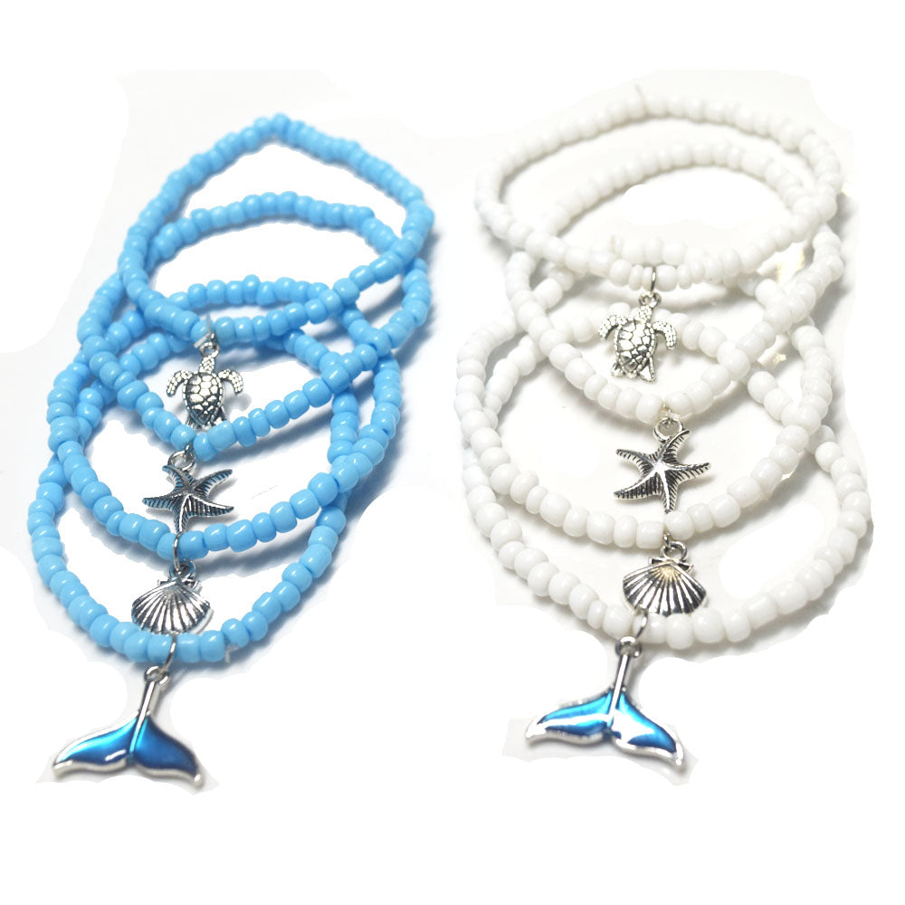 custom bohemian colorful elastic vacation sea beach surfing turtle seashell maermaid conch shell bracelet jewelry bracelets