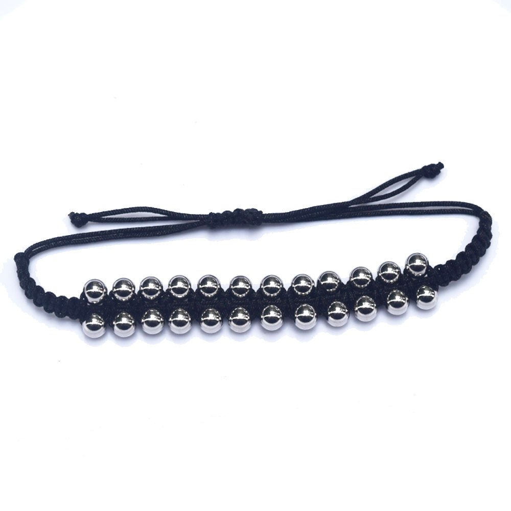 custom fashion trendy ladies handmade two rows of stainless steel beads 6mm non-tarnish adjustable hand bracelet jewelry women's