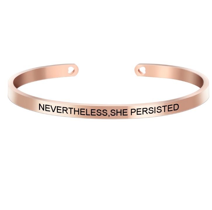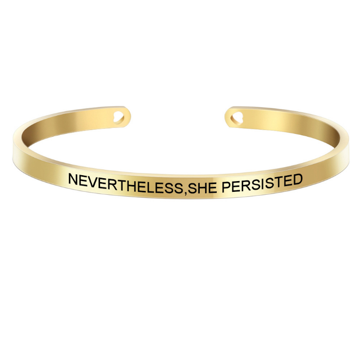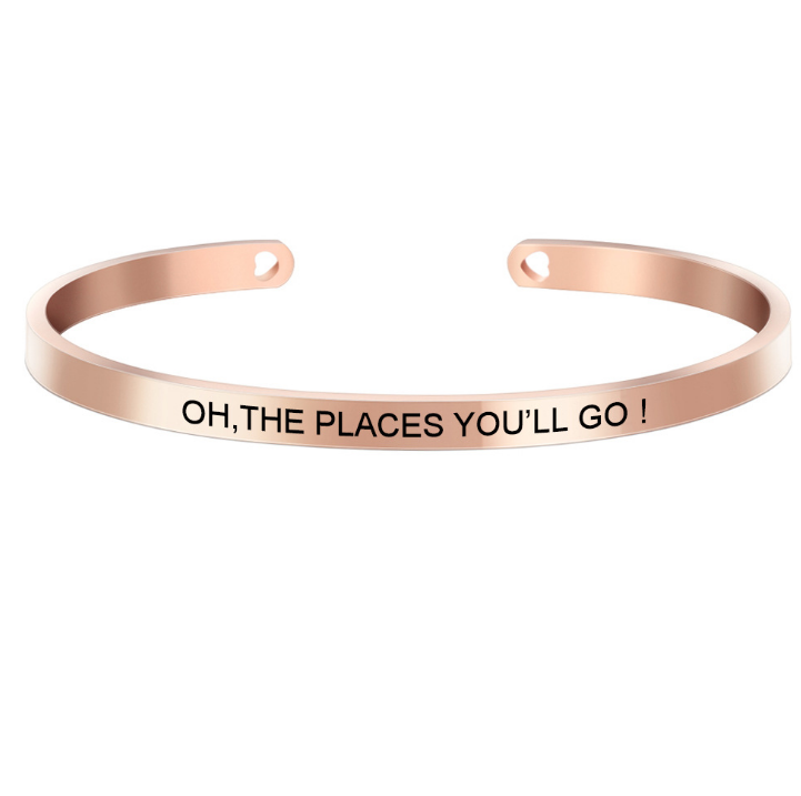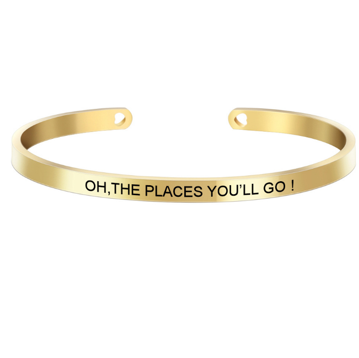 custom wholesale stainless steel open cuff engraving inspiration words bracelet jewelry women